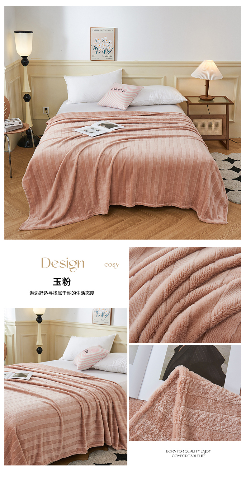 (总)馨米莱家纺 2025新款AB版牛奶绒提花纯色多功能盖毯毛毯,兰色,裸粉色,米灰色,米咖,浅驼,深咖,嫣红色