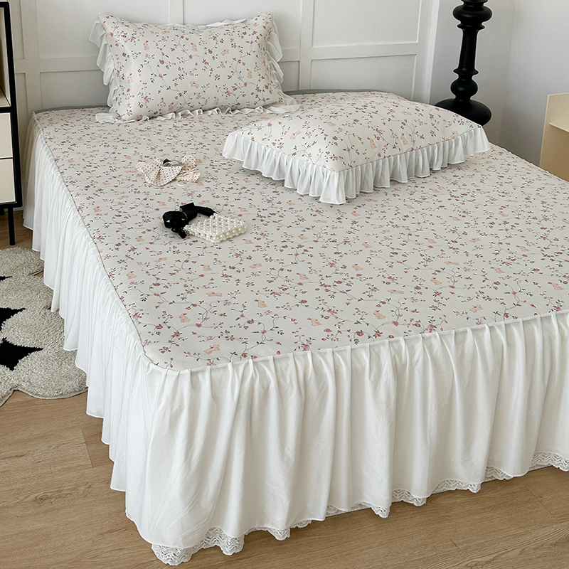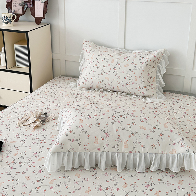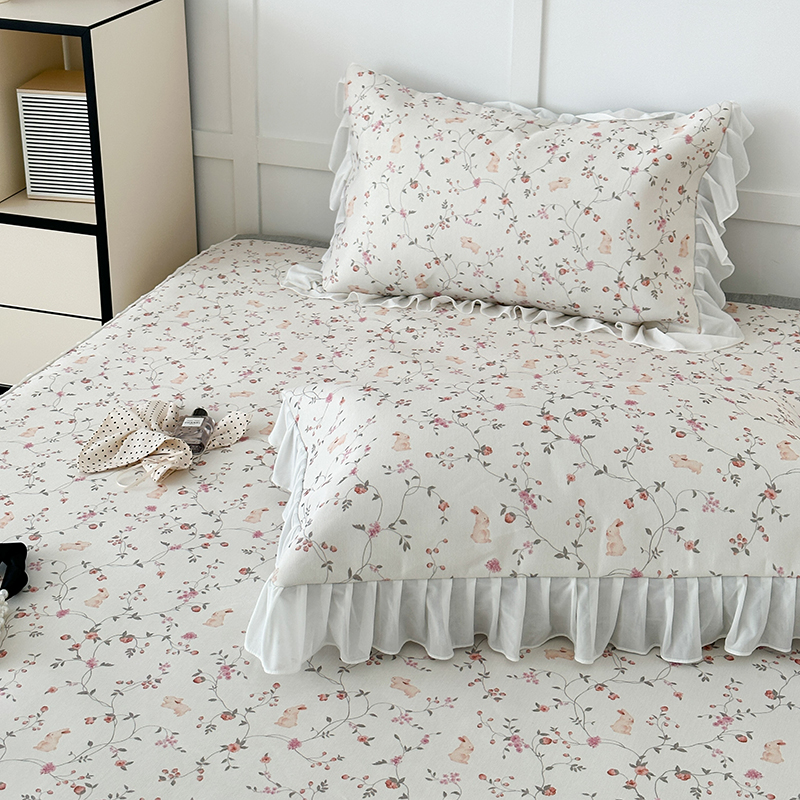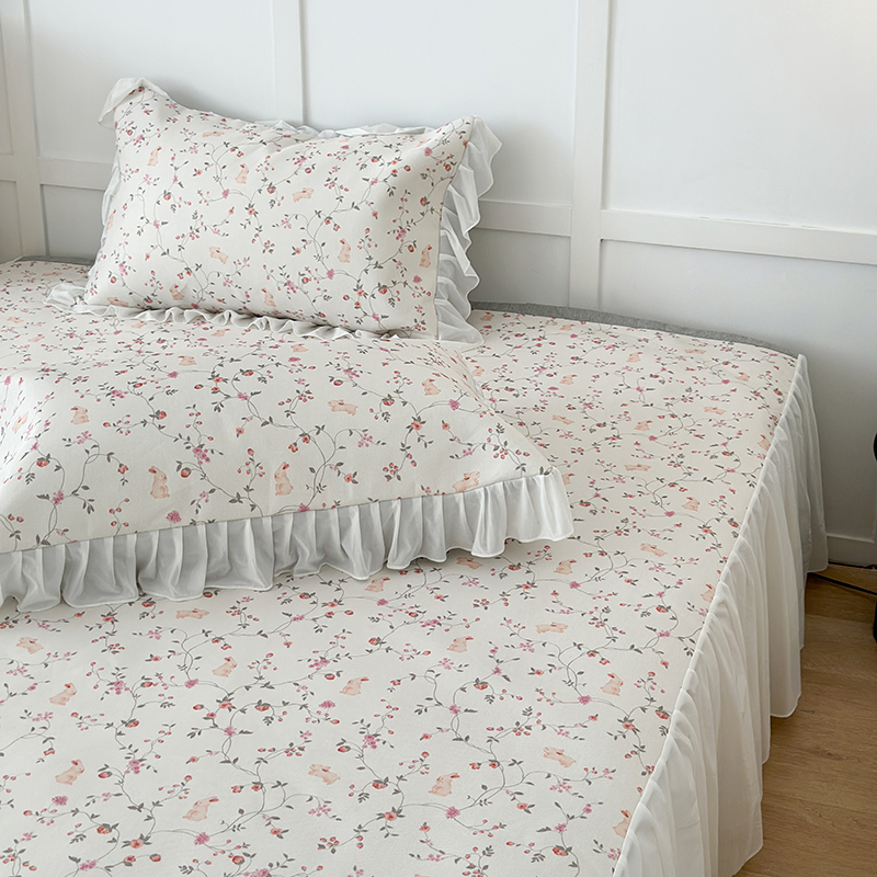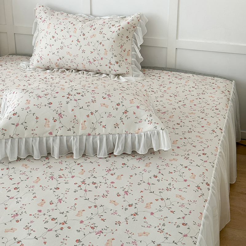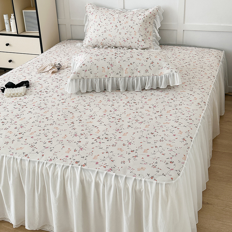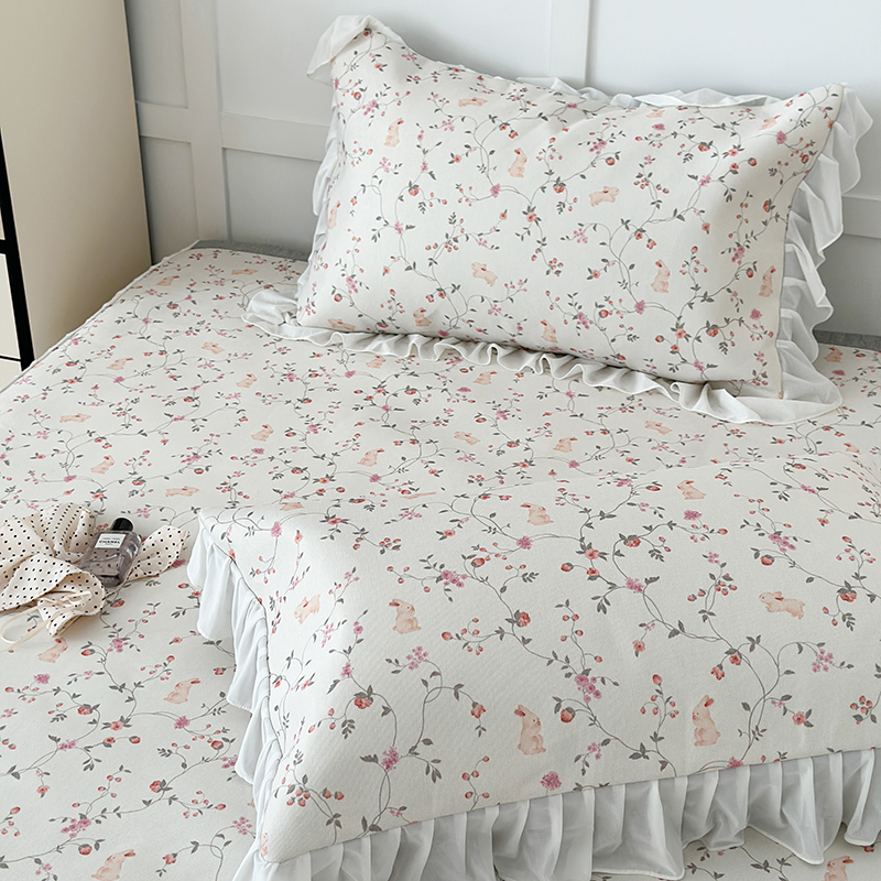 昔可家纺 2024新款A类900D仙仙雪纺床裙冰丝席 花园萌兔