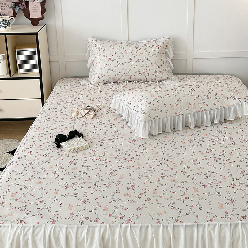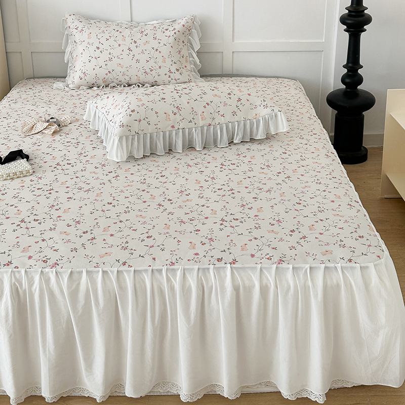 商品名称:昔可家纺 2024新款A类900D仙仙雪纺床裙冰丝席 花园萌兔