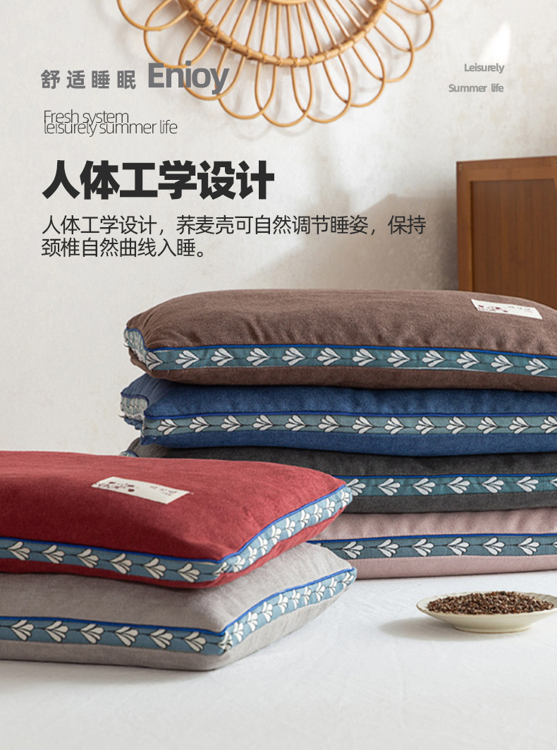 (总)大熊枕芯 2025新款棉麻刺绣款荞麦枕枕头枕芯,棉麻刺绣款荞麦枕