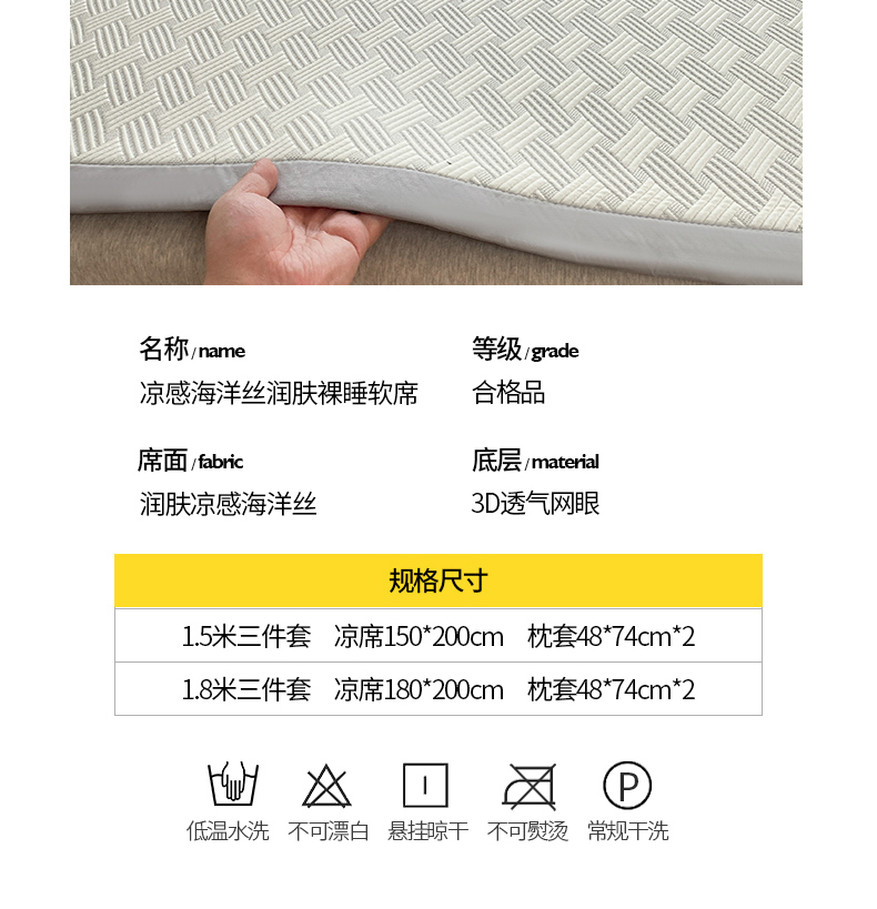 商品名称:典冠 2024新款A类乙伦凉感PE凉席海洋丝裸睡软席三件套 格子纹