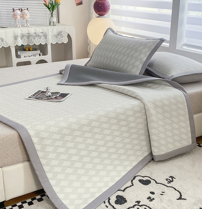 (总)典冠 (有质检)2024新一代凉感抗菌提花夏被空调被夏被三件套(提供买家秀),冰川灰,冰川蓝,卡其,密瓜绿,樱花粉,米黄,青草绿