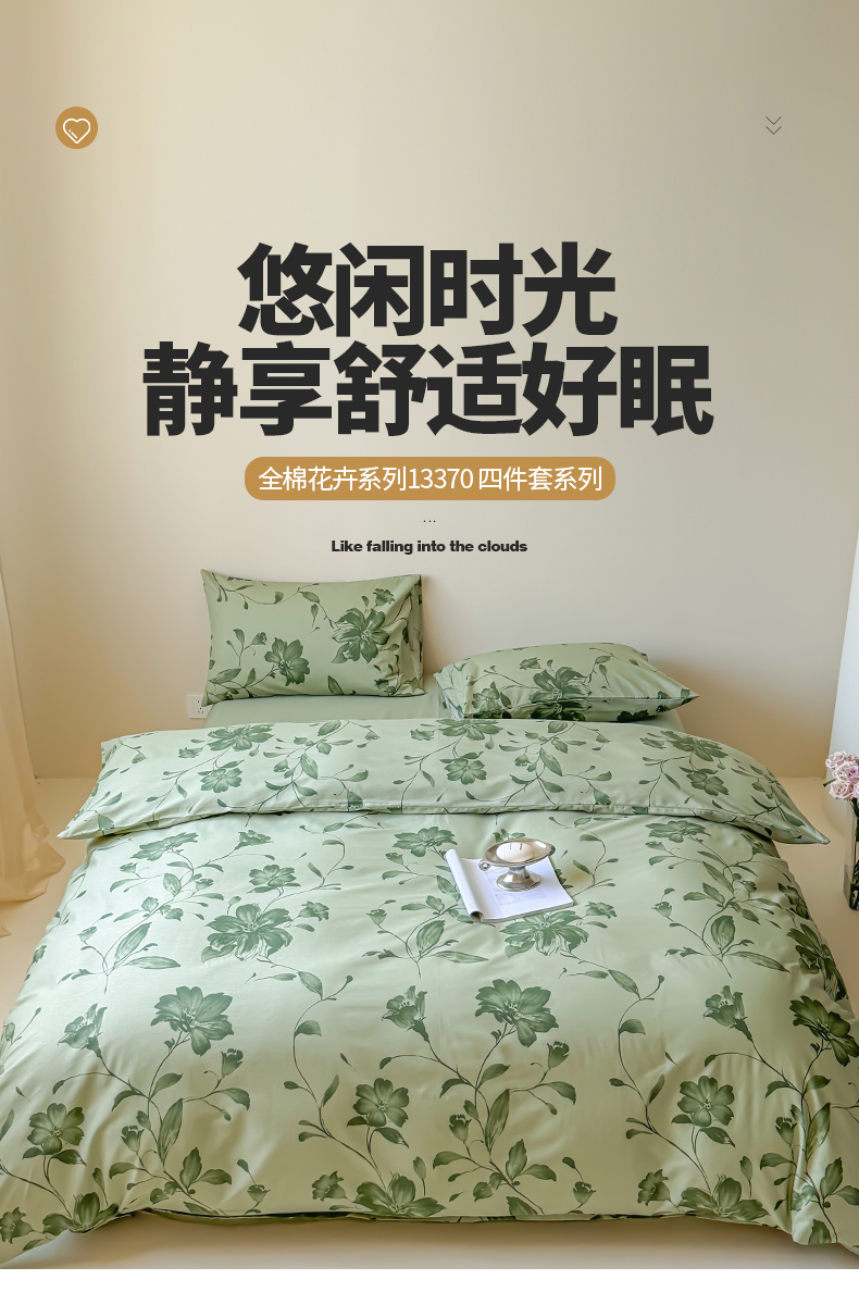 当前位置: 91家纺网 > 商品网购 > 床品套件 > 四件套 > 全棉普通四件套 > 2024新款全棉13370花卉款系列四件套 觅棠
