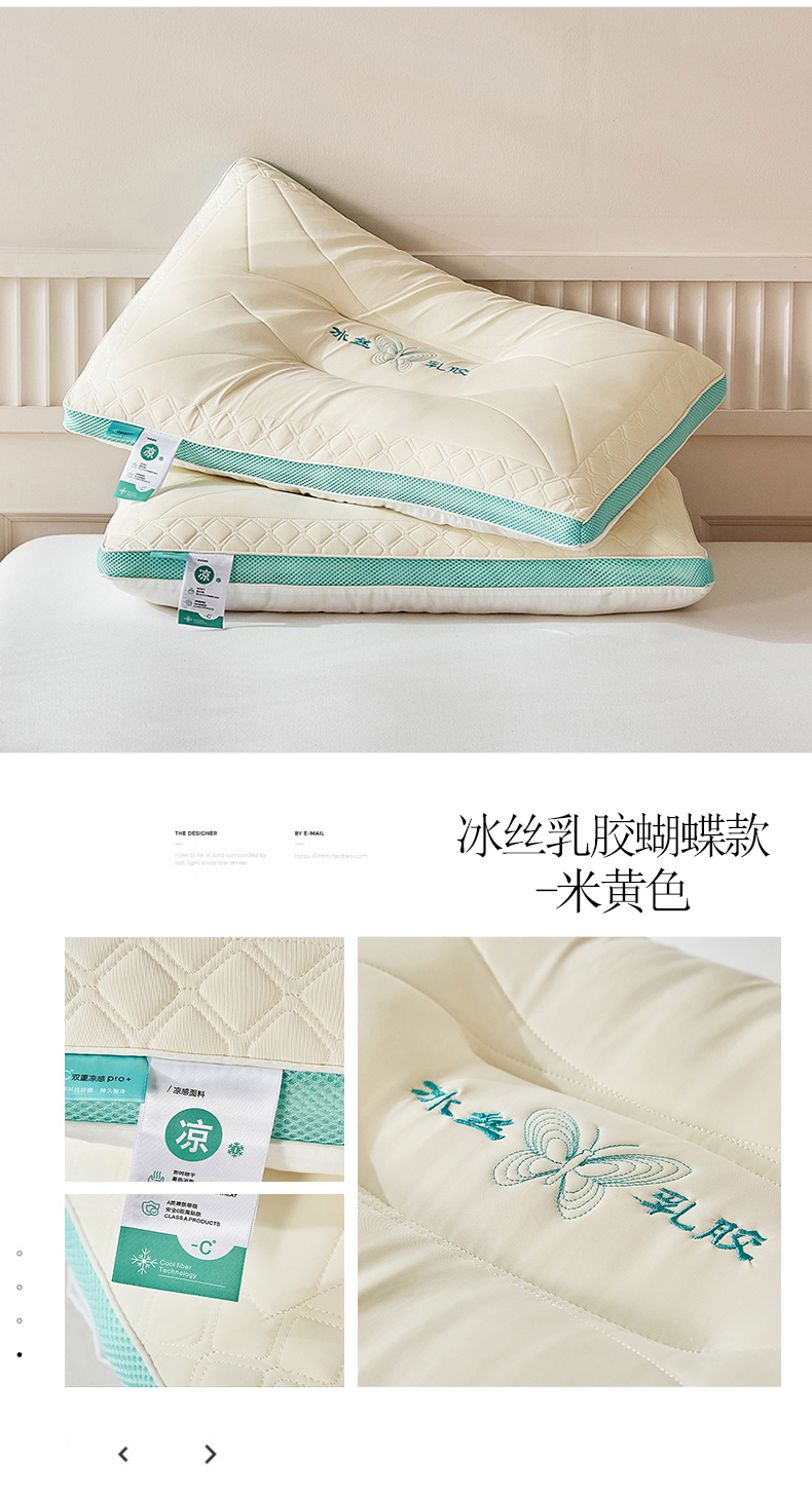 商品名称:梵希良品家纺 2024新款冰丝乳胶枕-蝴蝶款 冰丝乳胶蝴蝶款-米黄色 低枕48x74cm/只