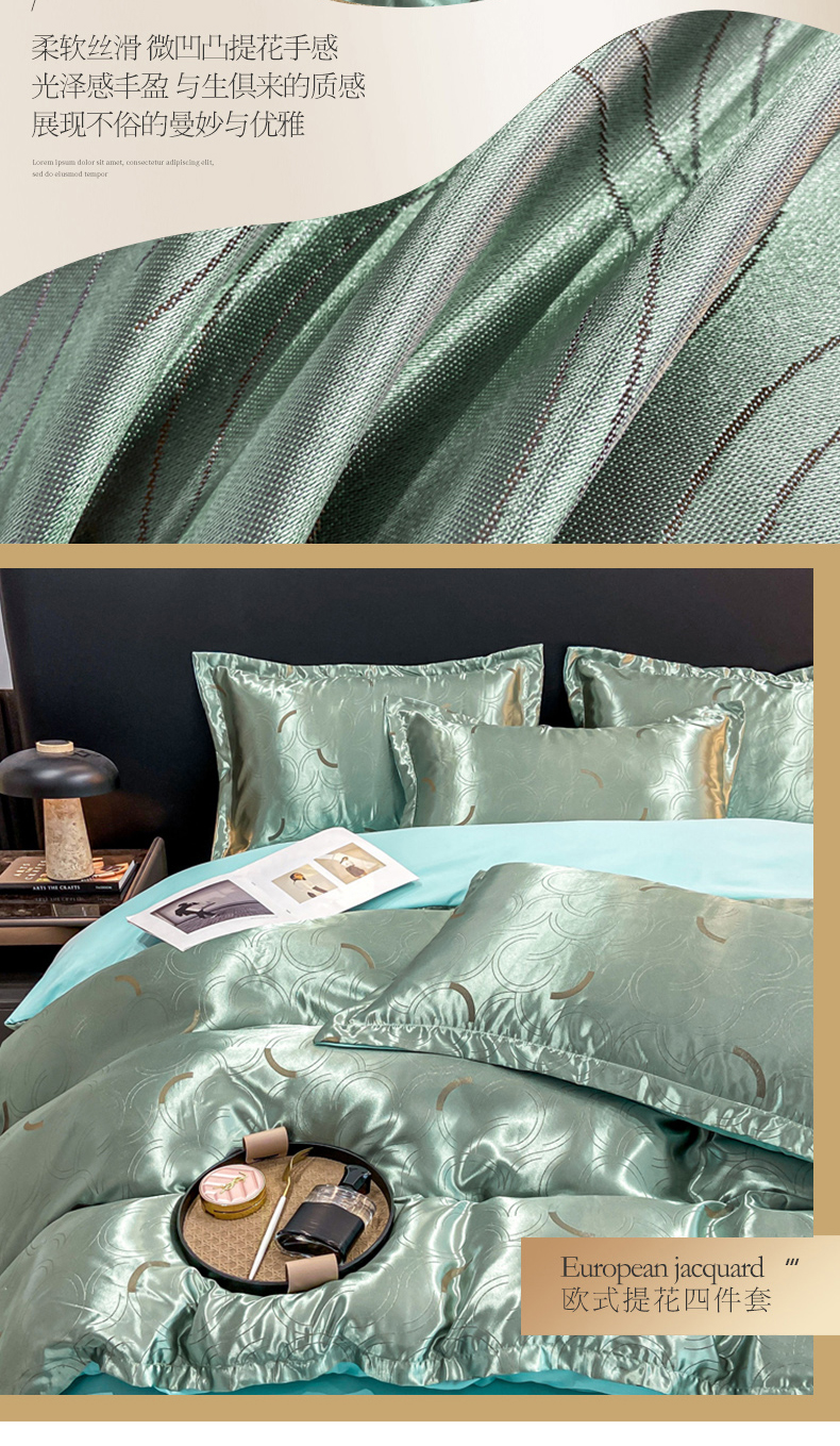 商品名称:莱欧纳家纺 2025新款轻奢欧式提花四件套 简言-绿
