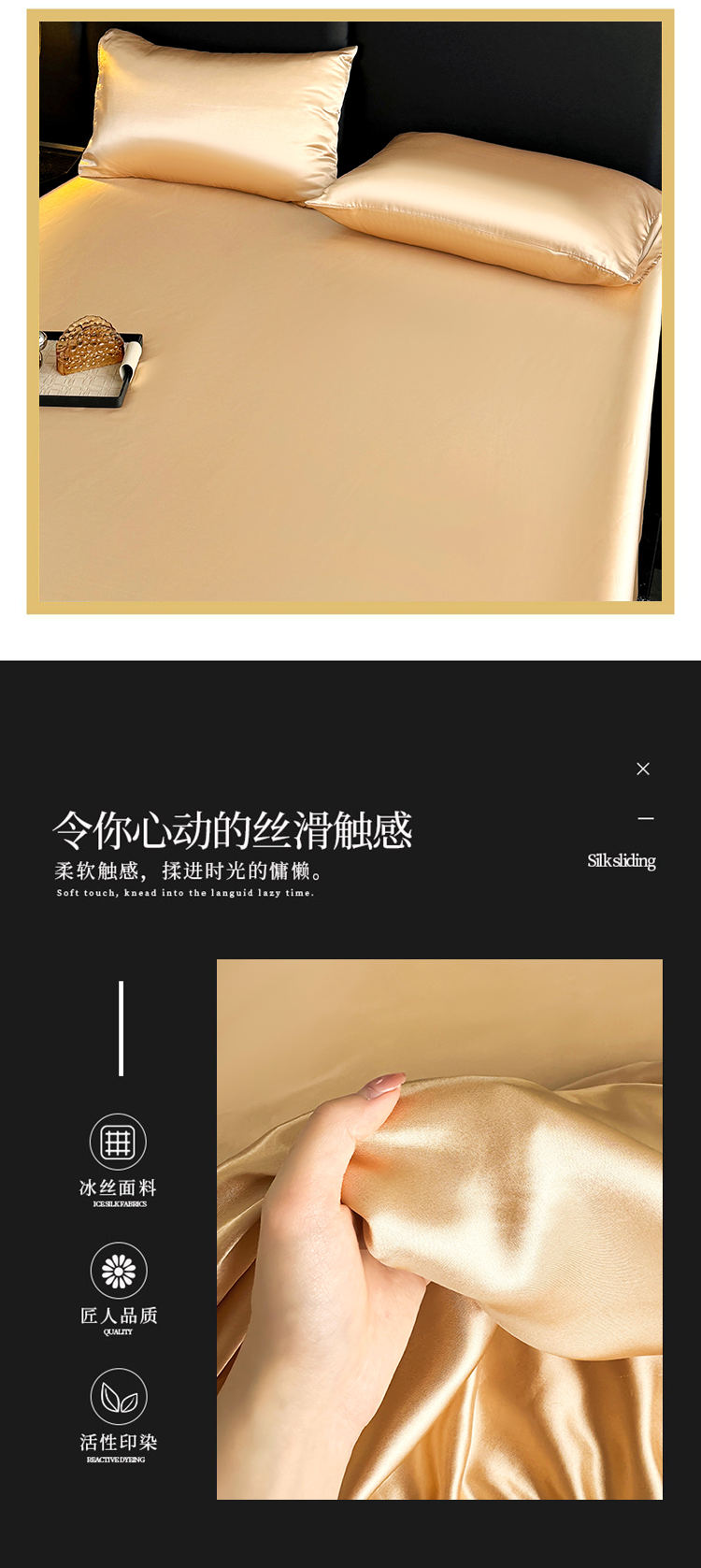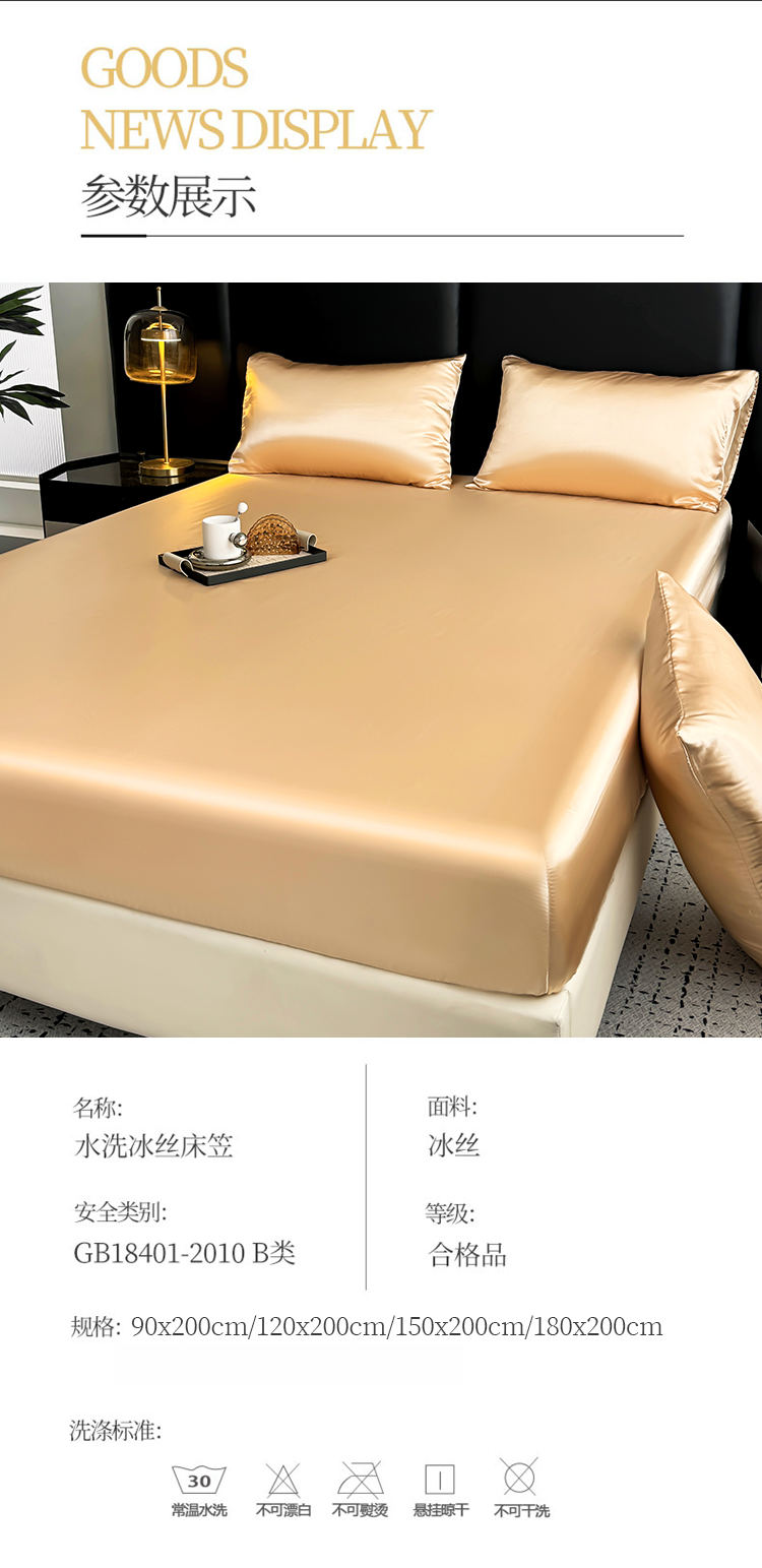商品名称:2024新款轻奢风水洗冰丝床笠 香槟色