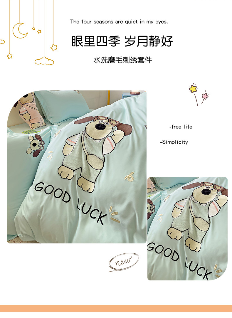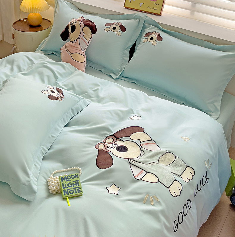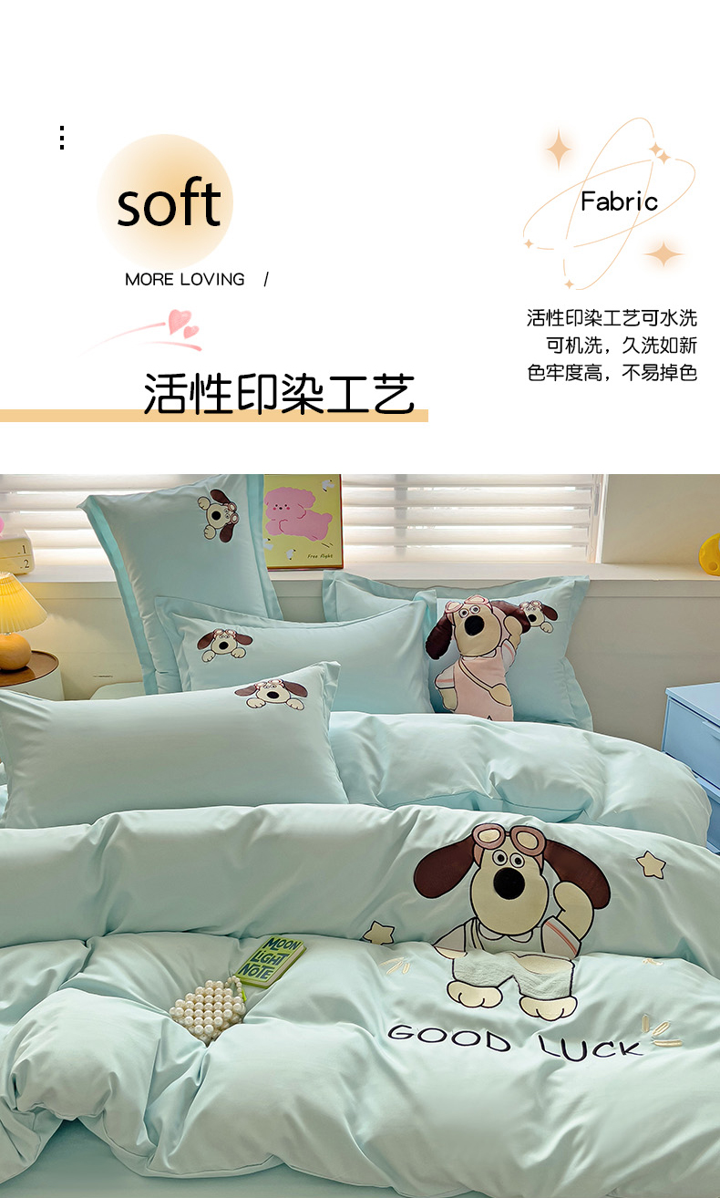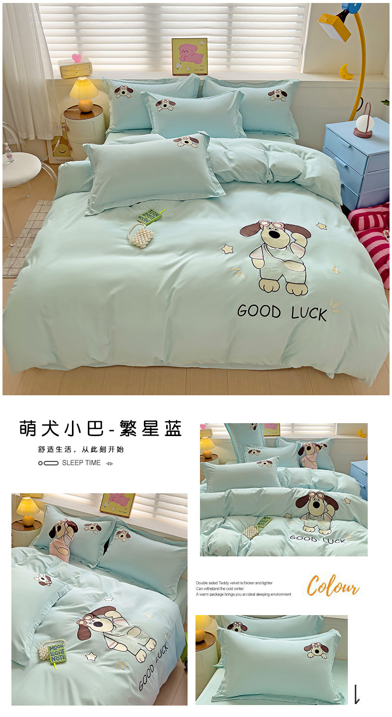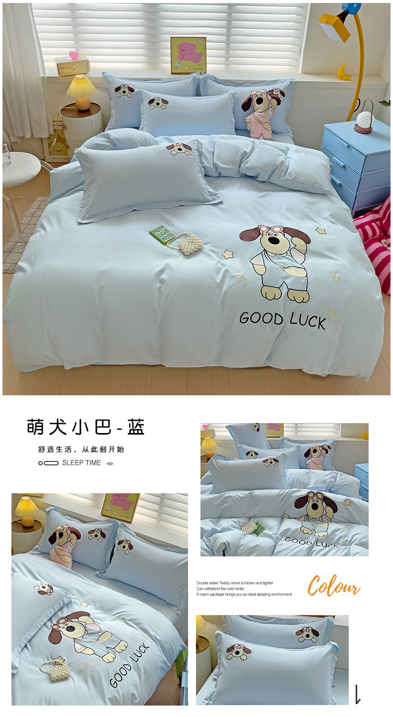 2024新款磨毛水洗棉可爱萌趣四件套--萌犬小巴系列 萌犬小巴-繁星蓝
