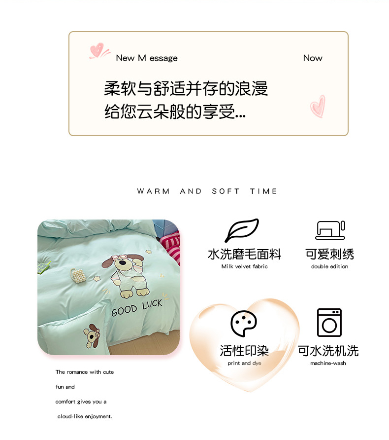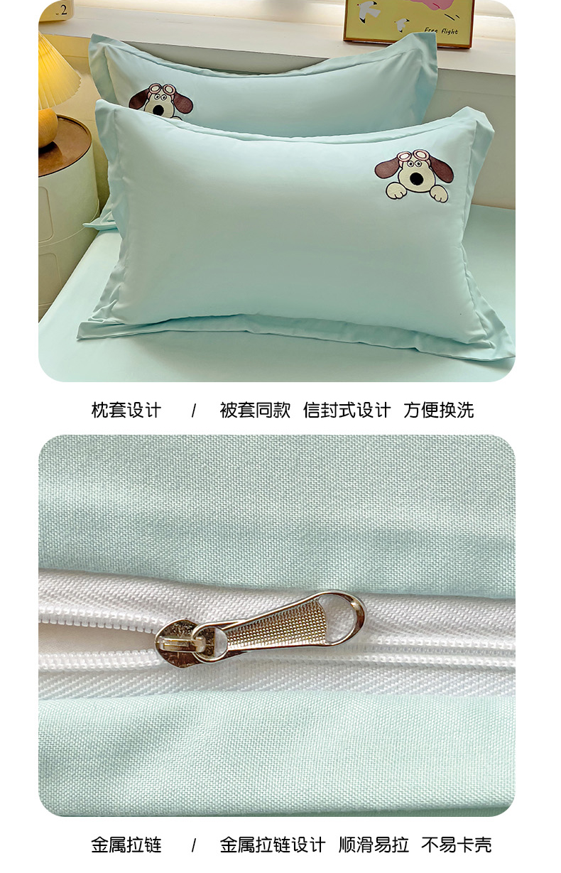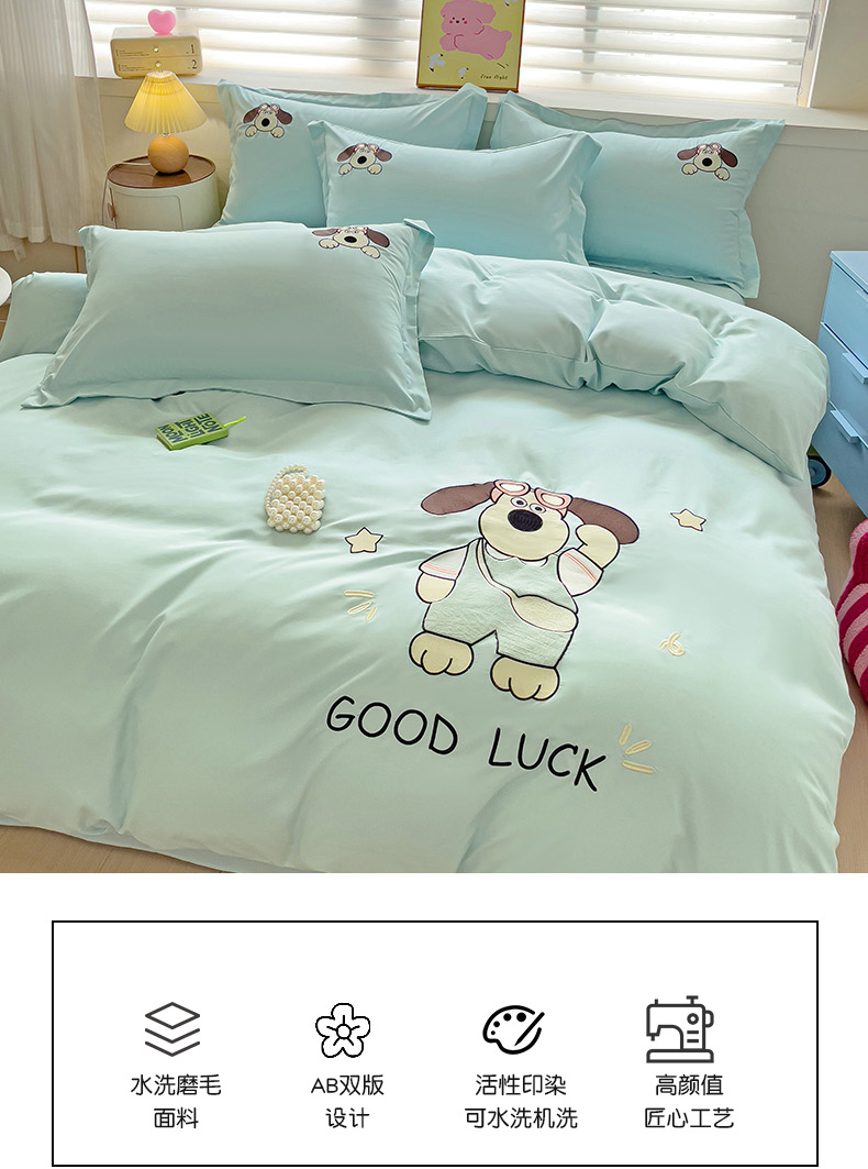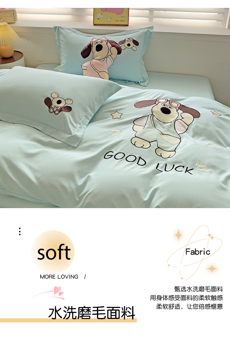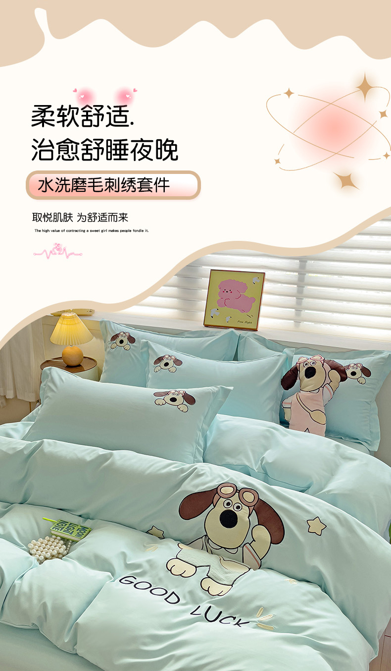 2024新款磨毛水洗棉可爱萌趣四件套--萌犬小巴系列 萌犬小巴-繁星蓝