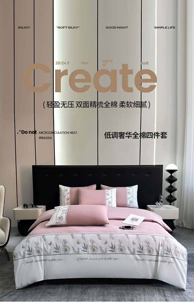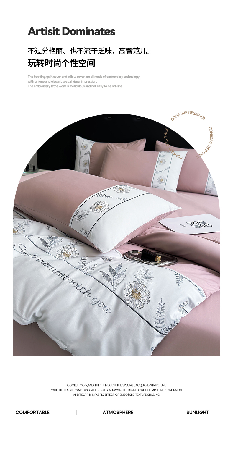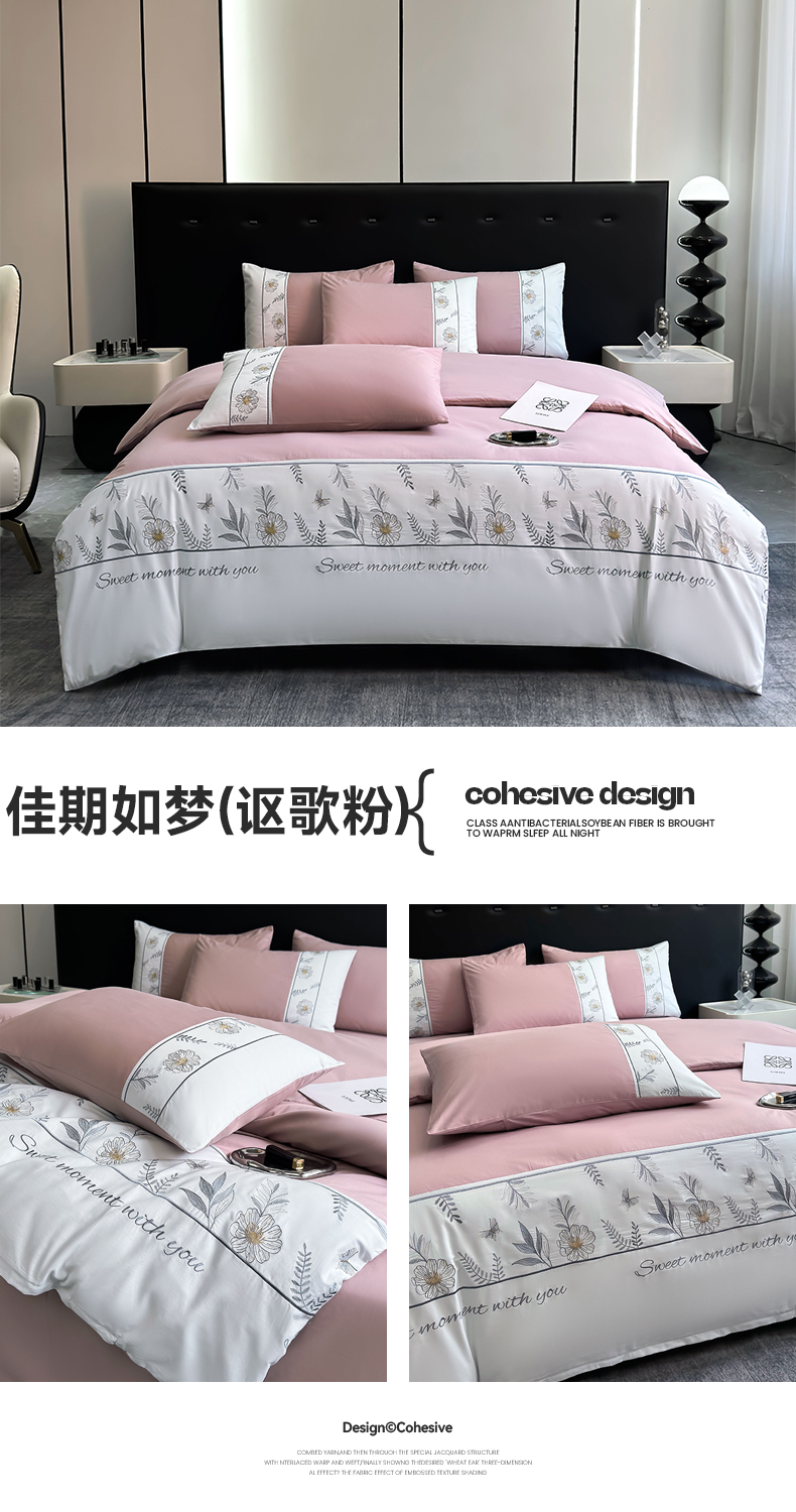 商品名称:2024秋冬新款高密度全棉四件套-佳期如梦 佳期如梦(讴歌粉)
