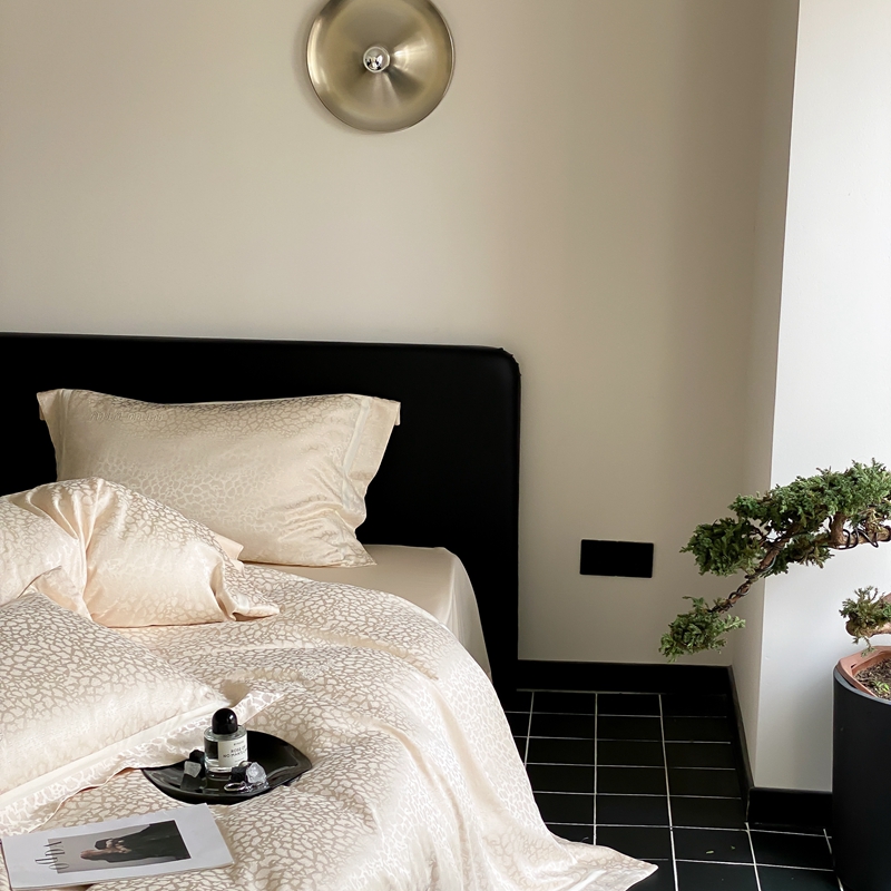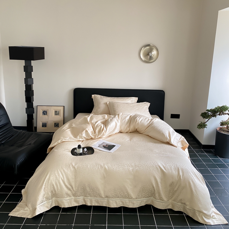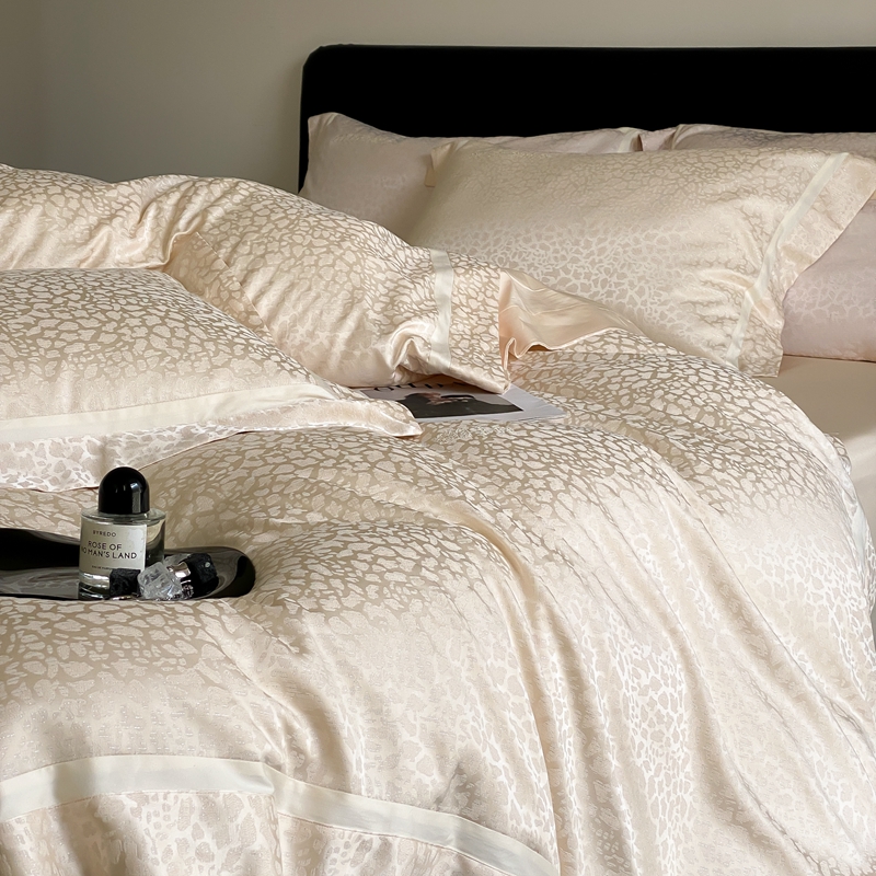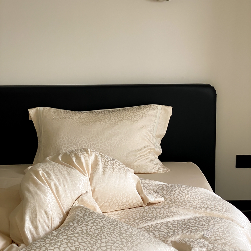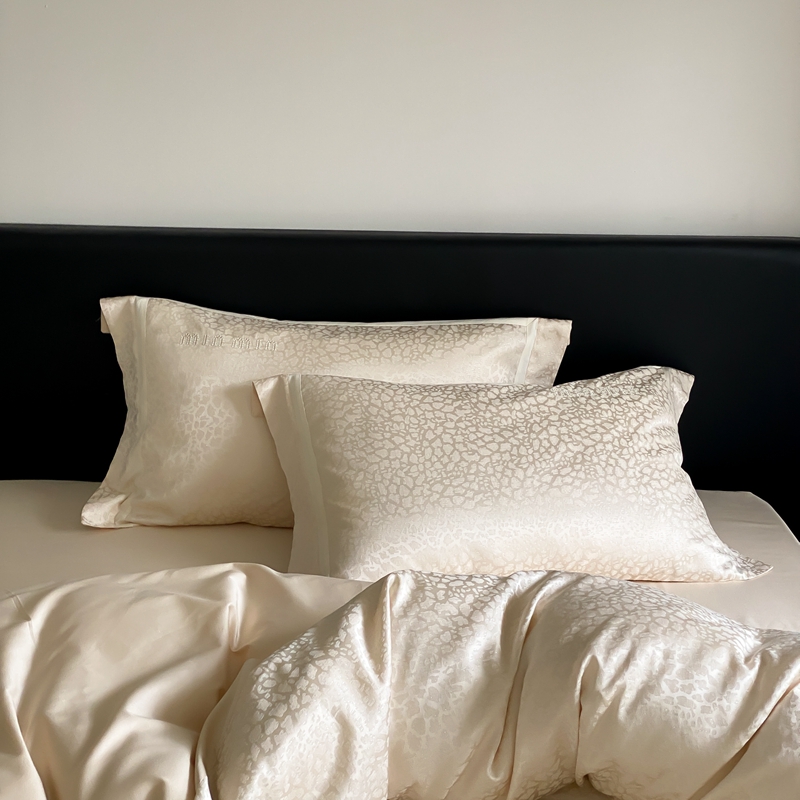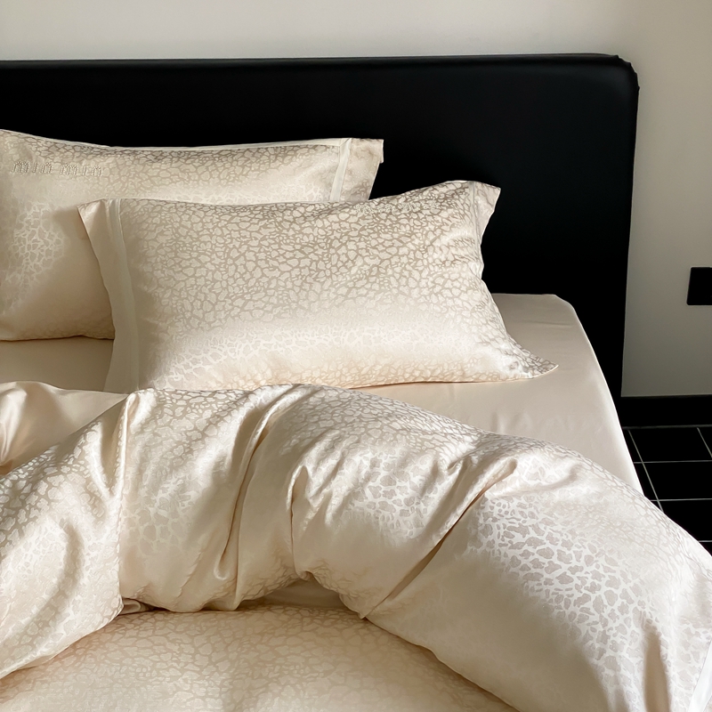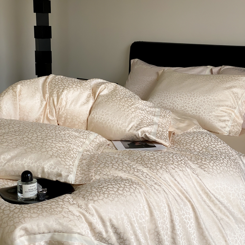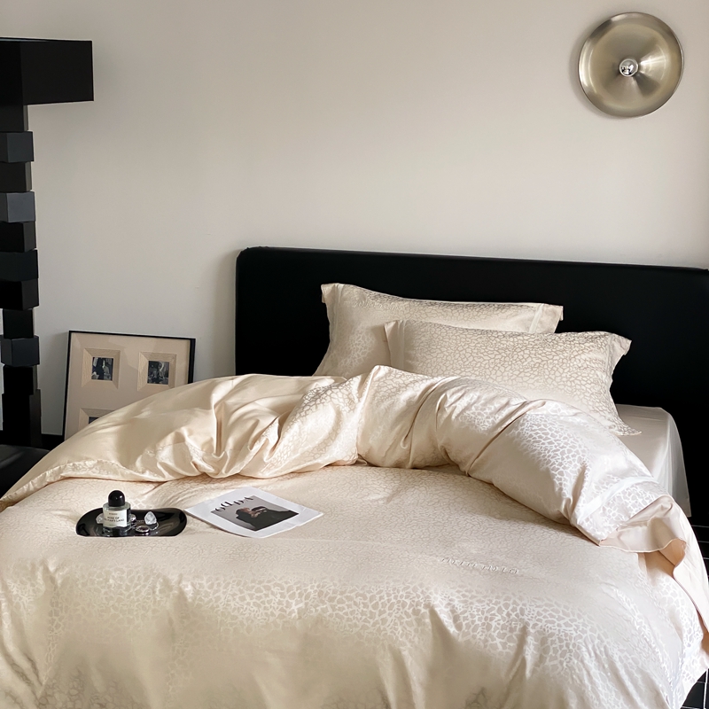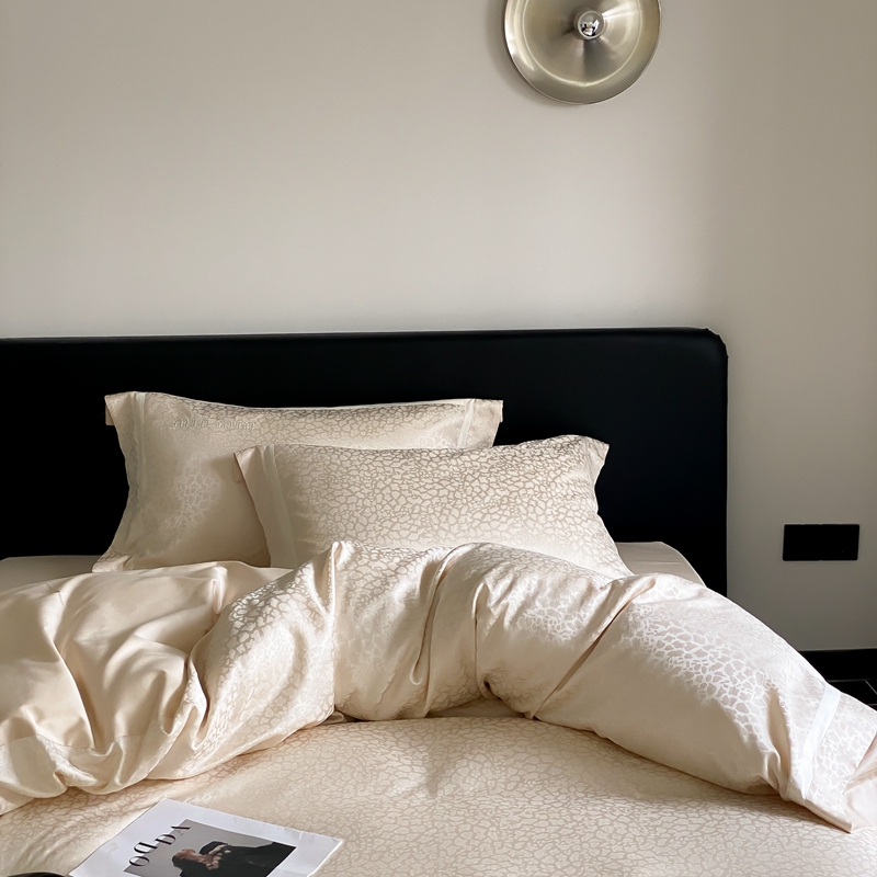 商品名称:MIU缪家居 2024新款100支全棉高精密金银线色织提花四件套-慵懒之豹 慵懒之豹-米金色
