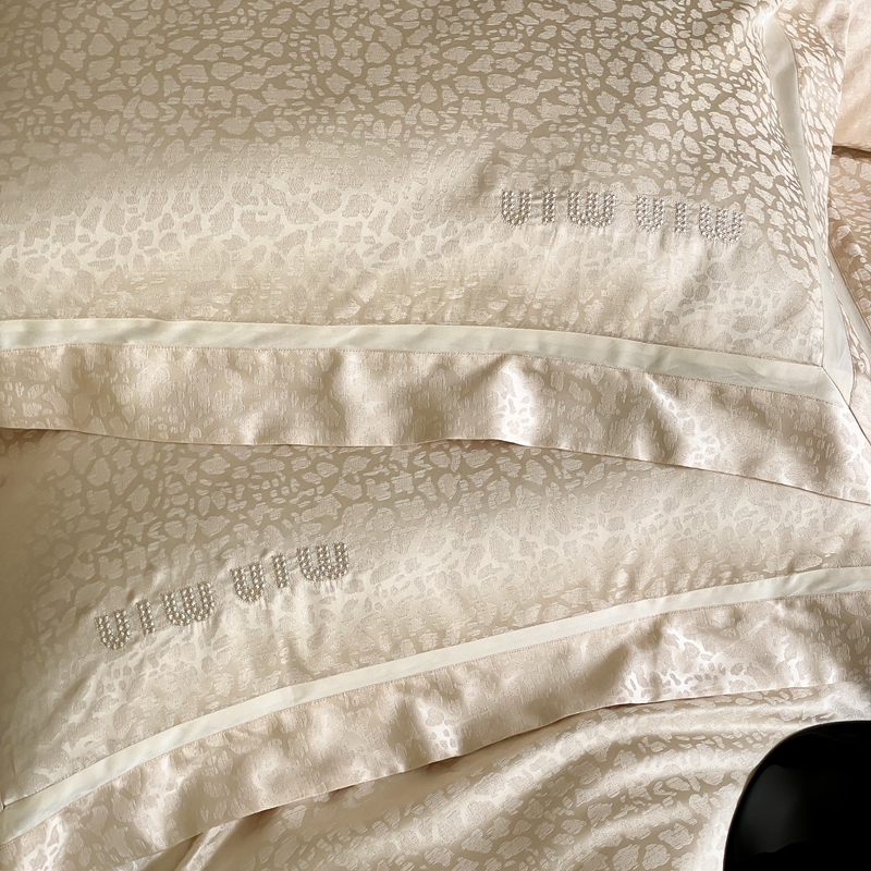 MIU缪家居 2024新款100支全棉高精密金银线色织提花四件套-慵懒之豹 慵懒之豹-米金色