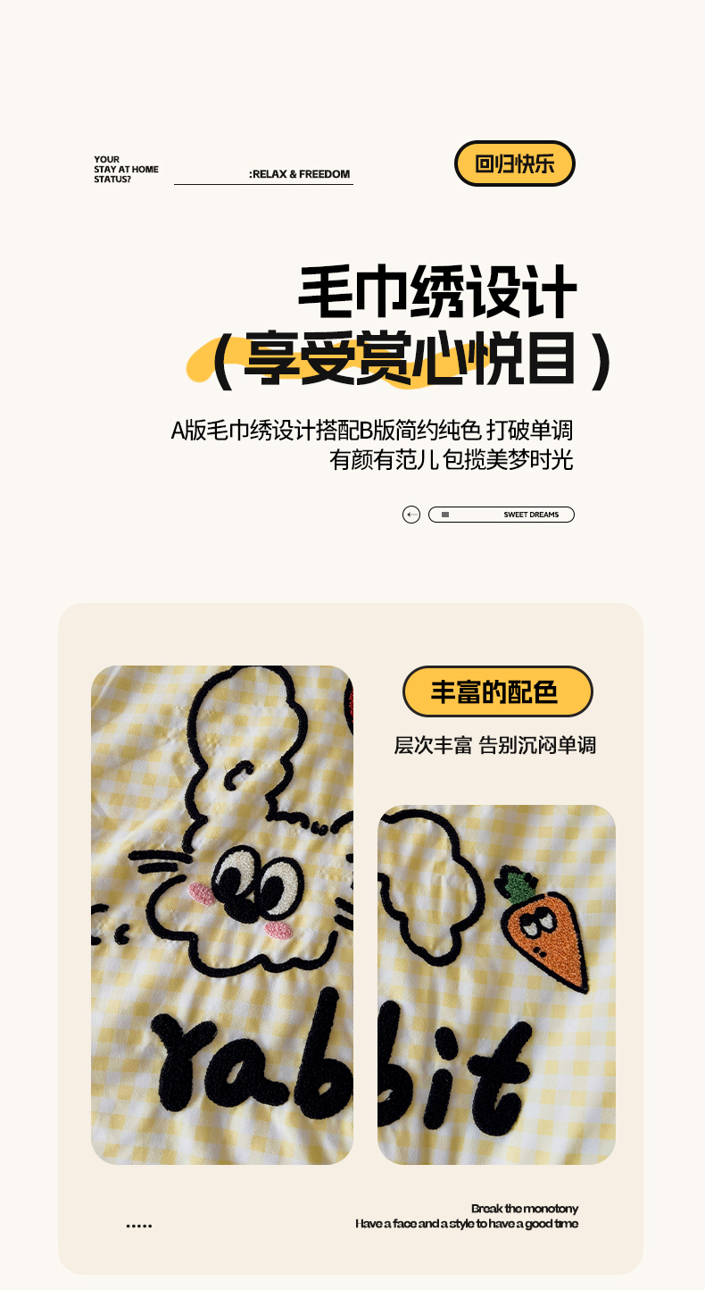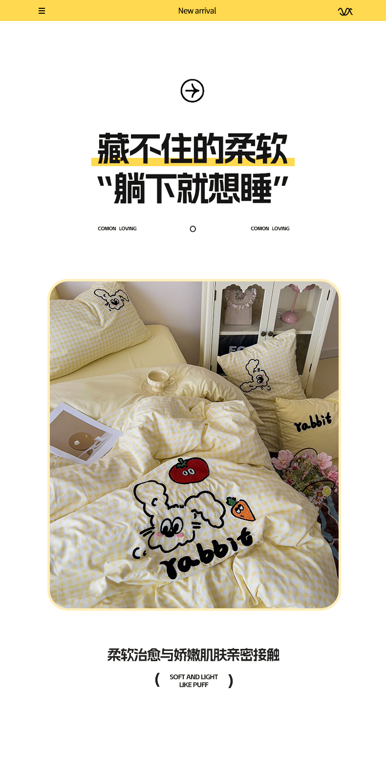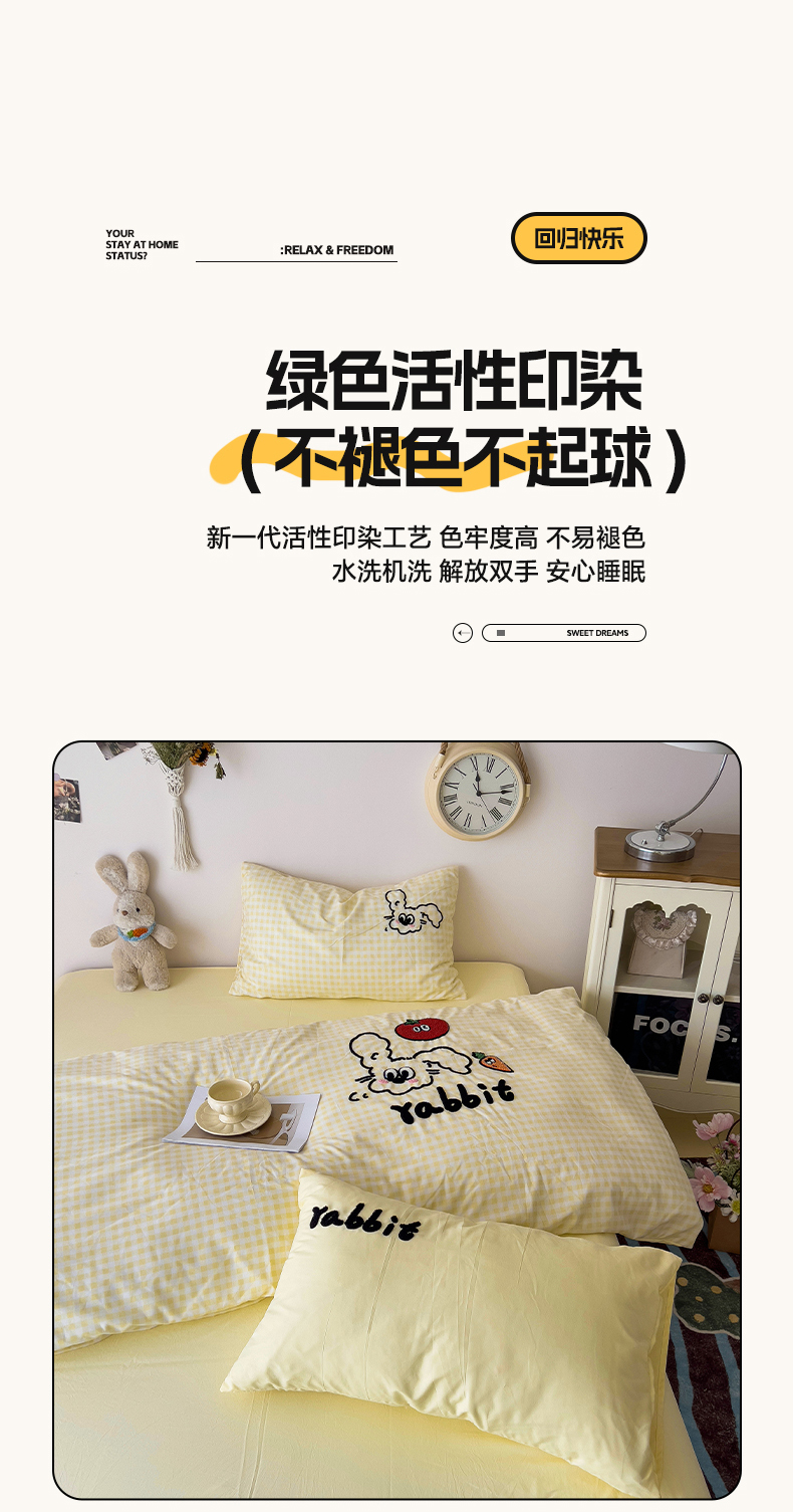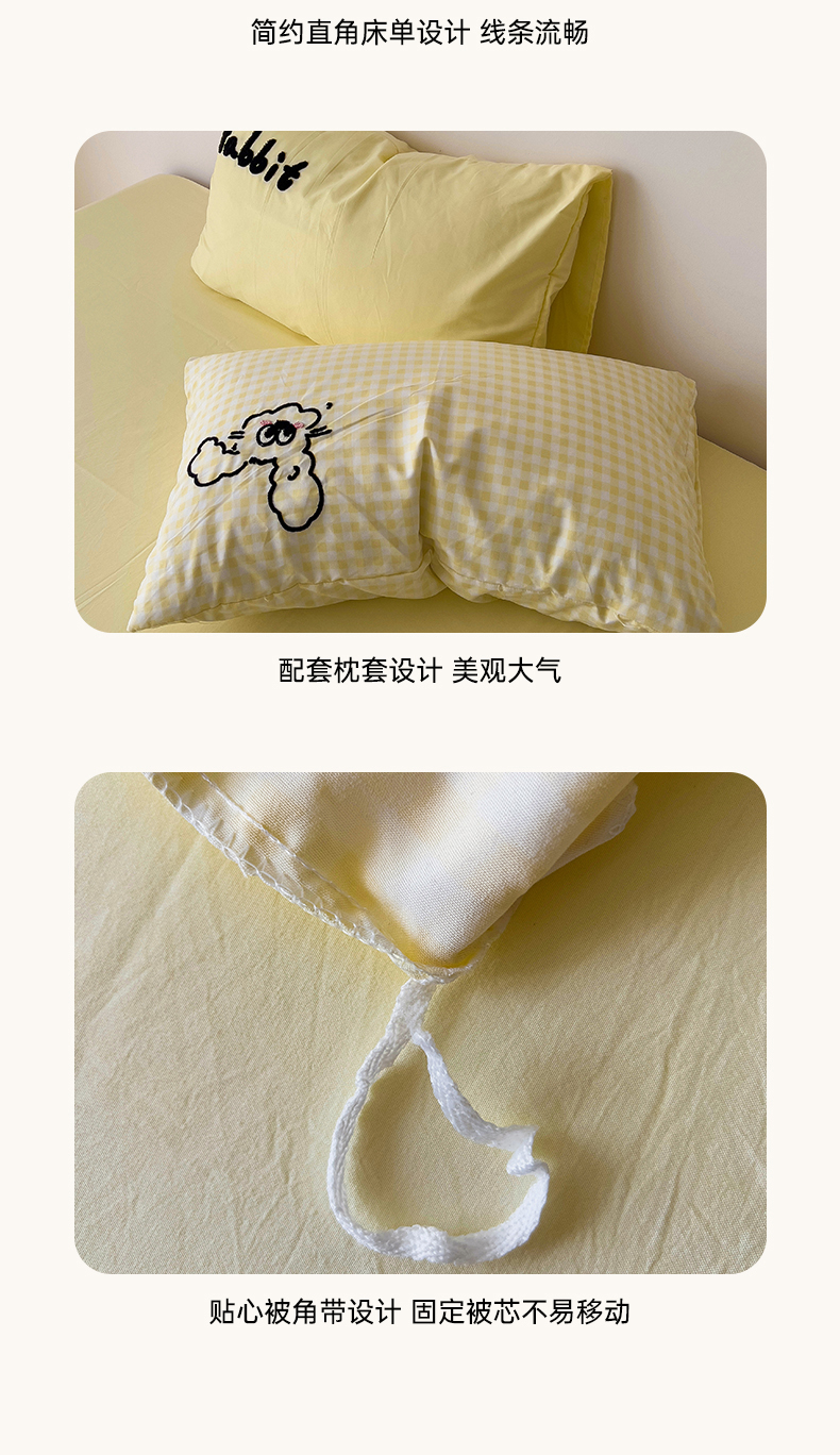 当前位置: 91家纺网 > 商品网购 > 床品套件 > 四件套 > 水洗棉四件套 > 尤米 2024新款可爱萝卜兔水洗棉毛巾绣四件套 萝卜兔-嫩黄