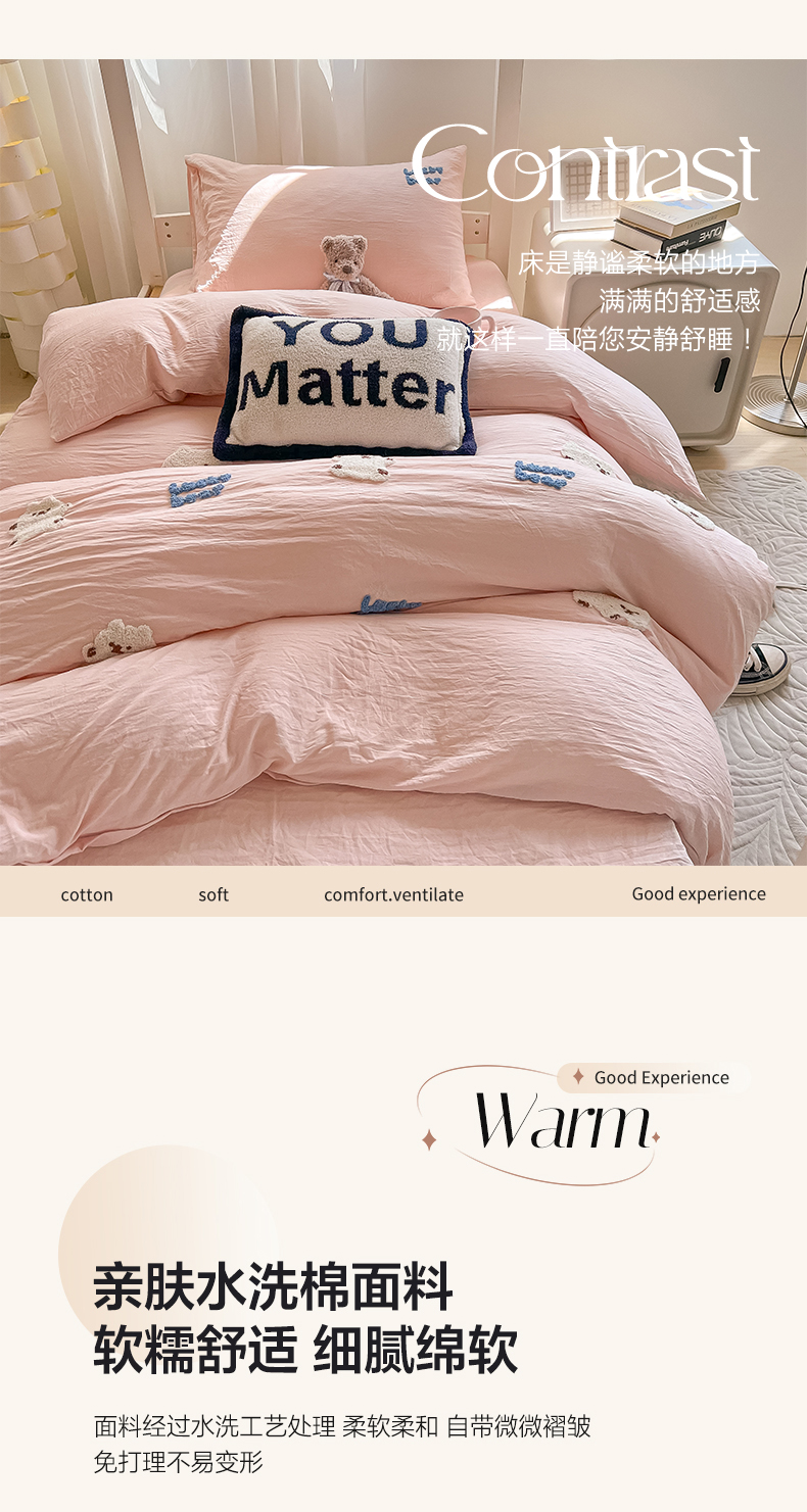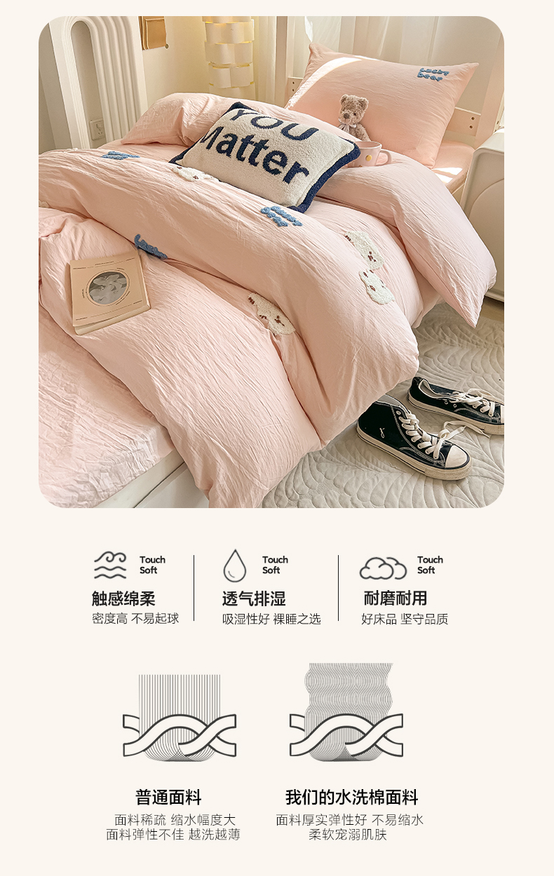 (总)韩巢家纺 2025新款水洗棉大花边被套四件套直播热销款学生宿舍被罩床单三件套(提供卖家秀),春日与玫瑰【大花边款】,繁花似梦【大花边款】,花时宇间【大花边款】,灰蒙小狗【大花边款】,久期诗朵-黄【大花边款】,可可腊肠犬【大花边款】,奶油樱桃【大花边款】,软糖猫【大花边款】,甜樱恋曲【大花边款】,温暖粉心【大花边款】,小花野-紫【大花边款】,小熊冰淇淋【大花边款】,星梦蝶结【大花边款】,幸运可爱兔【大花边款】,摘樱桃的小熊【大花边款】