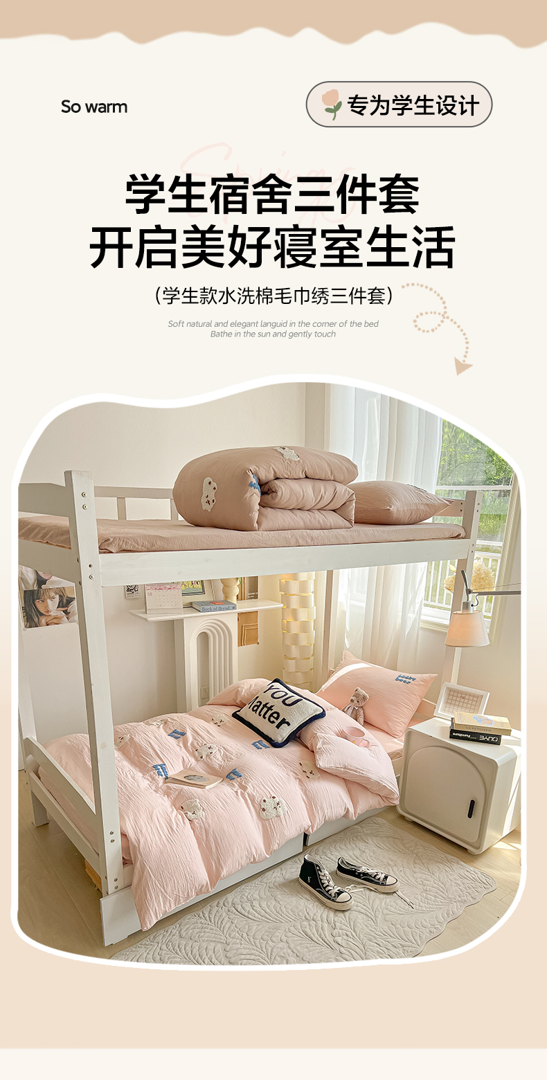 (总)韩巢家纺 2024新款学生宿舍寝室上下铺超柔水洗棉毛巾绣单件被套-小白熊(提供卖家秀)
