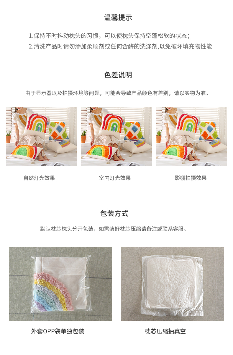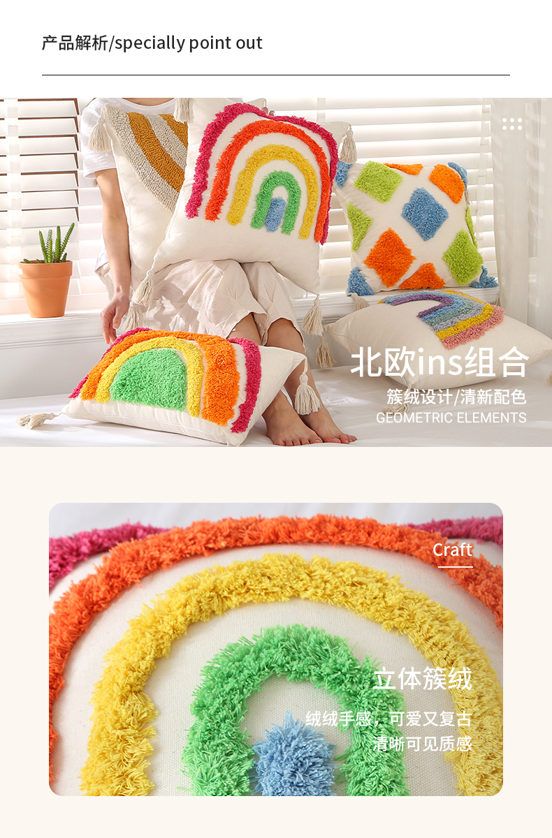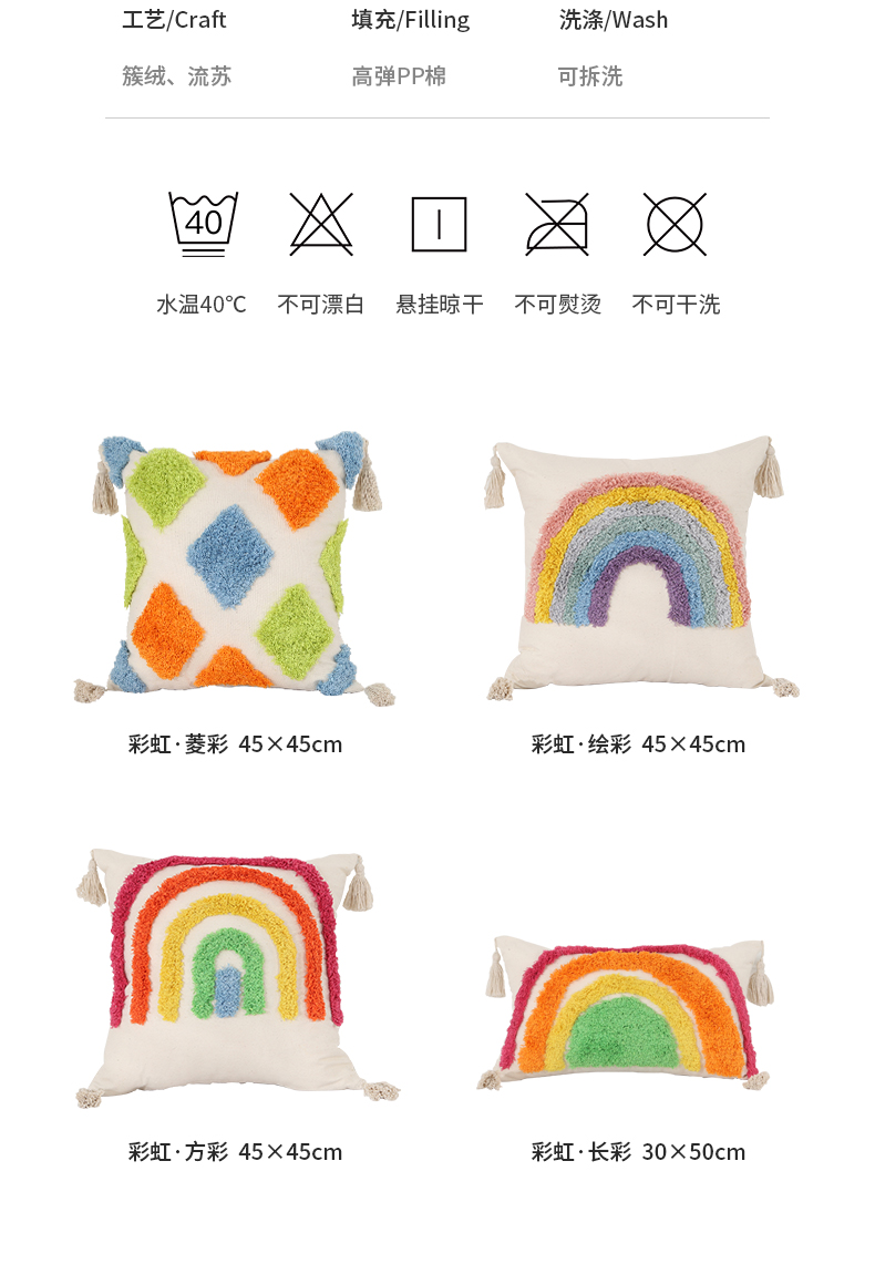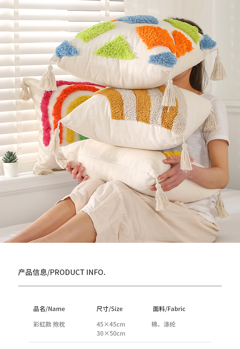 商品名称:囍莱家纺 2024新款簇绒流苏彩虹抱枕 彩虹-长彩