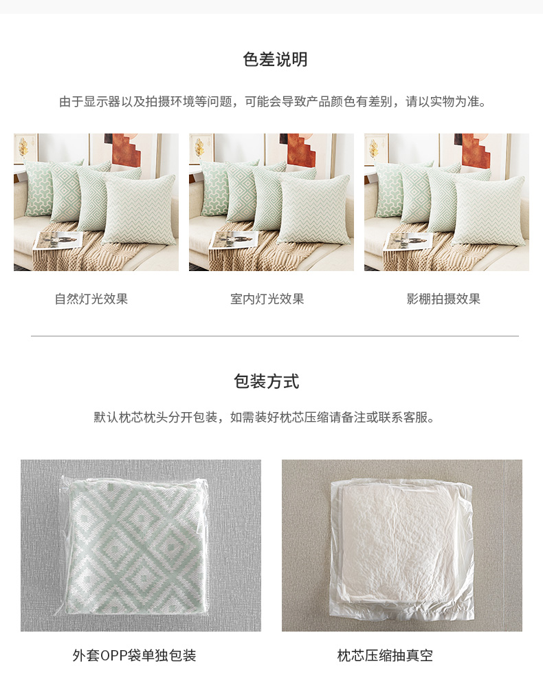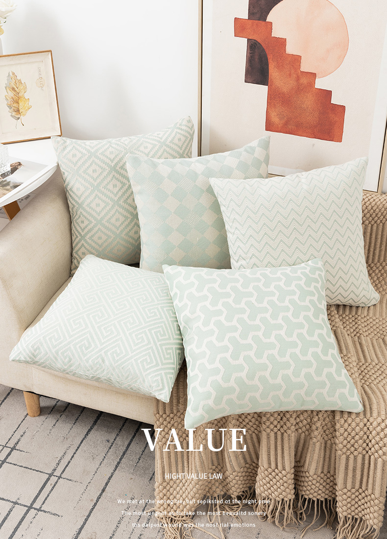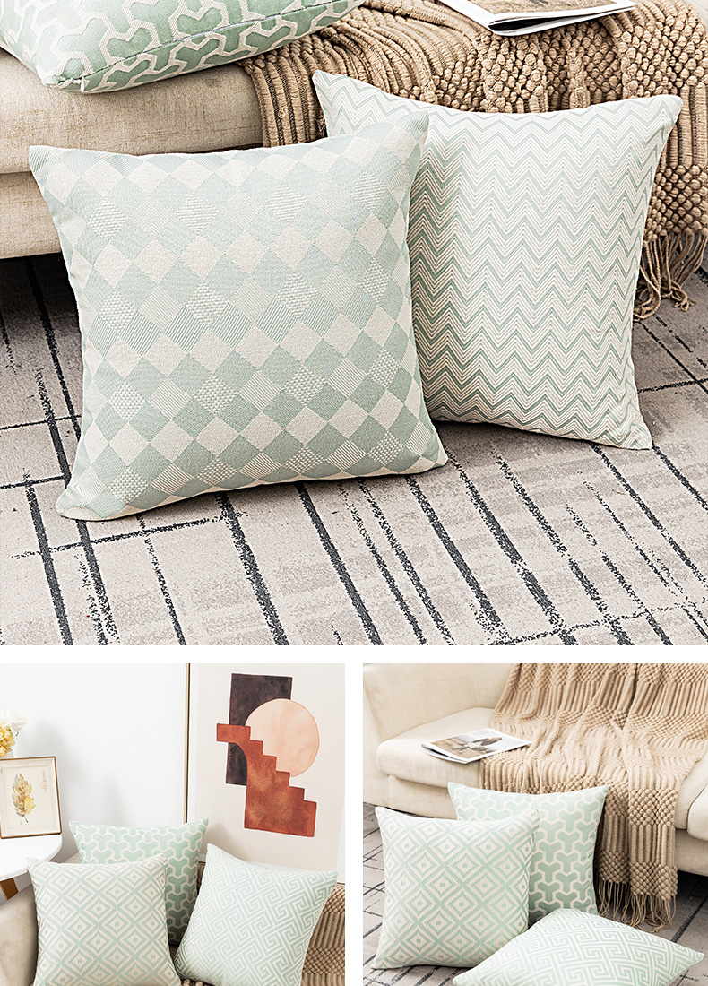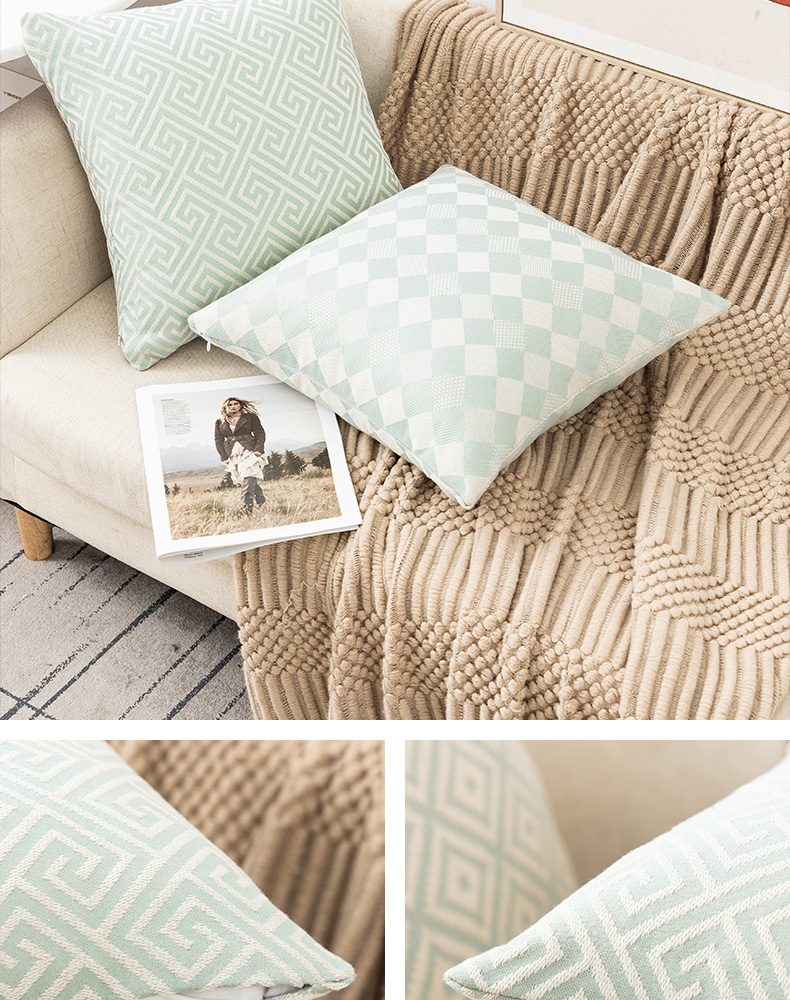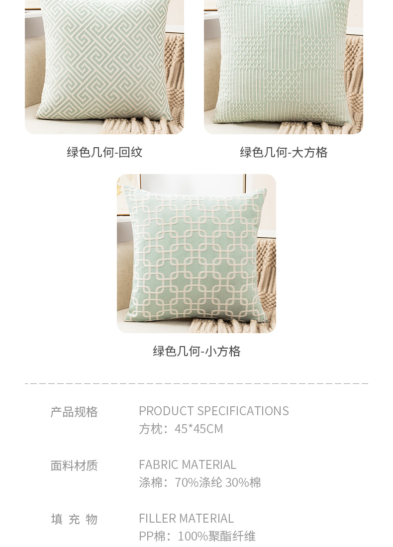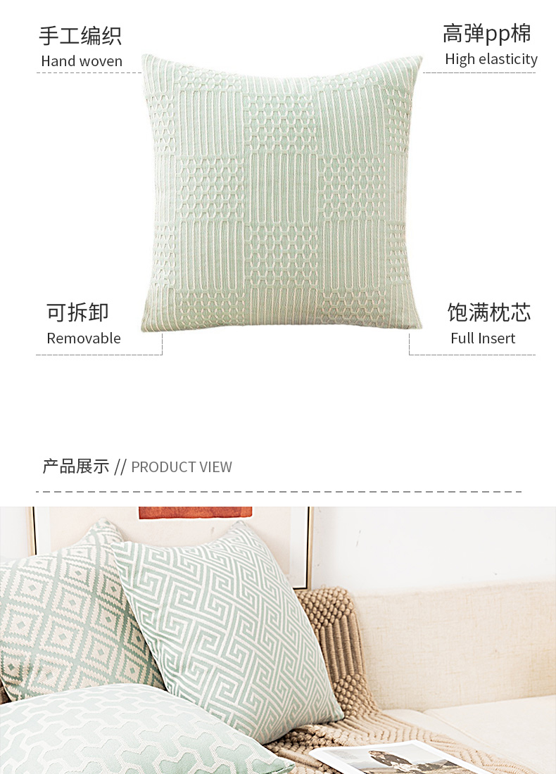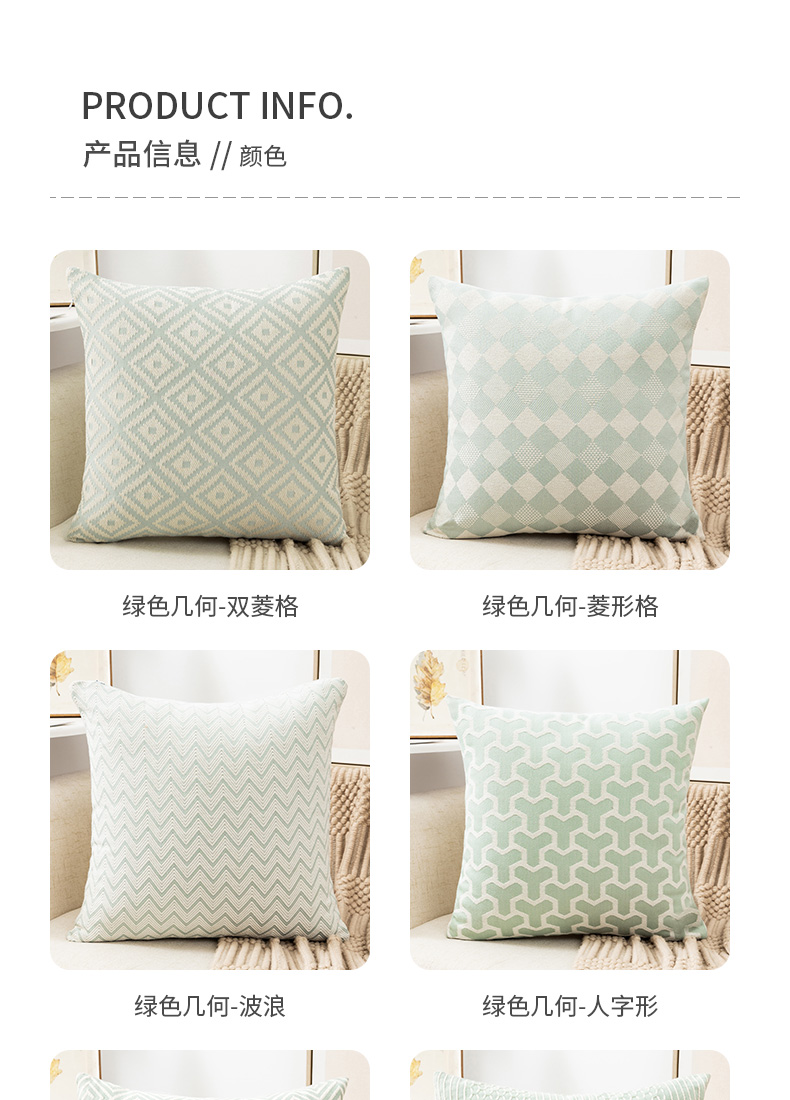 商品名称:囍莱家纺 2024新款手工编织抱枕-绿色几何系列 绿色几何-波浪