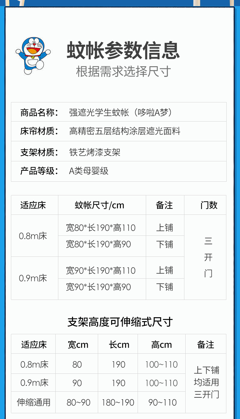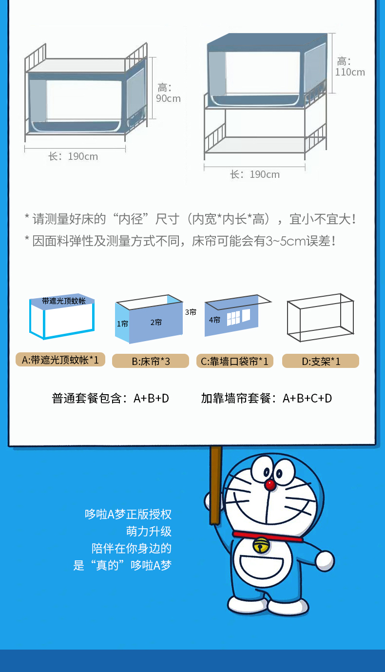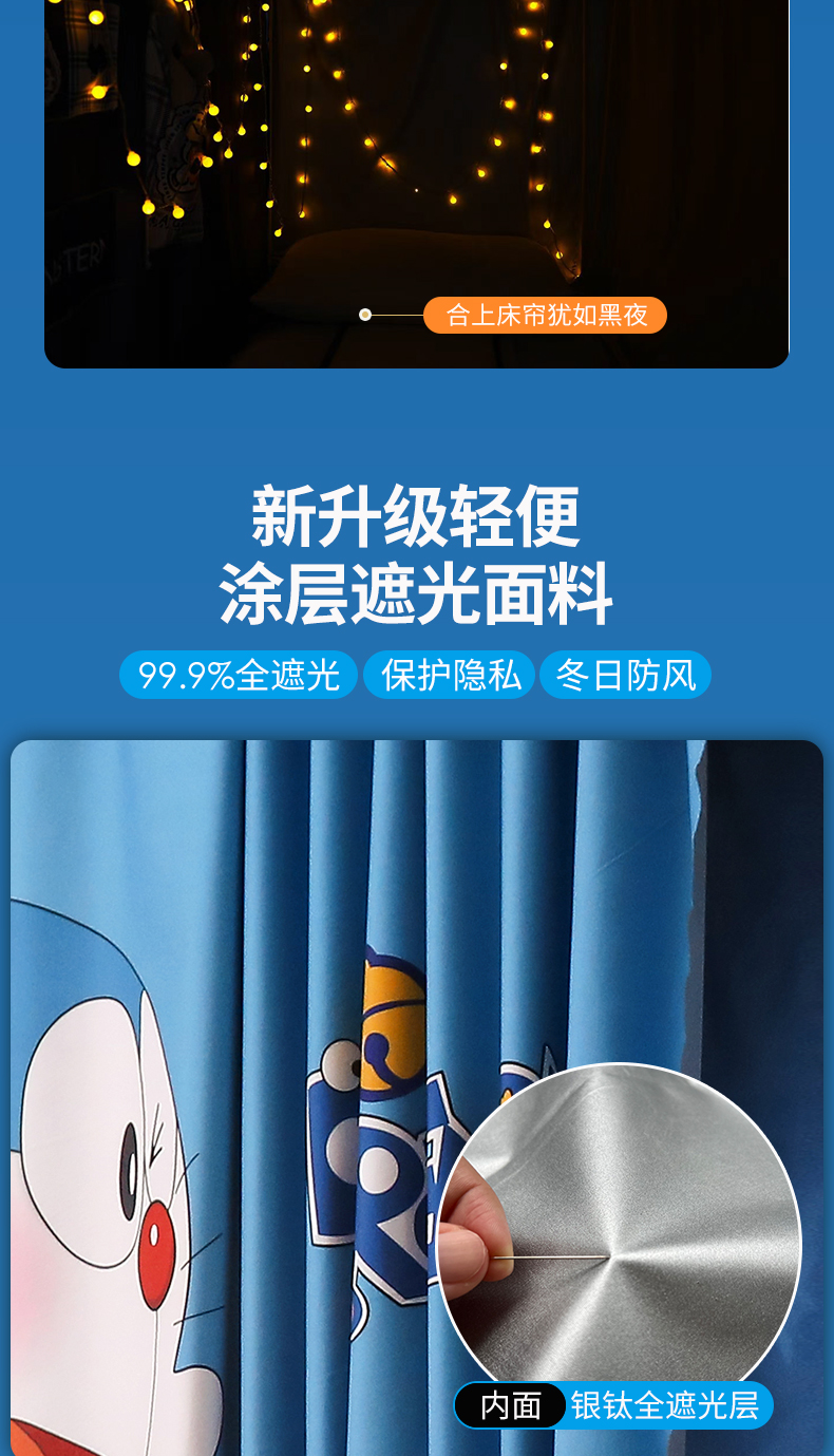 当前位置: 91家纺网 > 商品网购 > 床上用品 > 蚊帐 > 学生蚊帐 > 卓尔居 2025新款学生遮光床帘涂层包边卡通IP系列 哆啦A梦伴我同行
