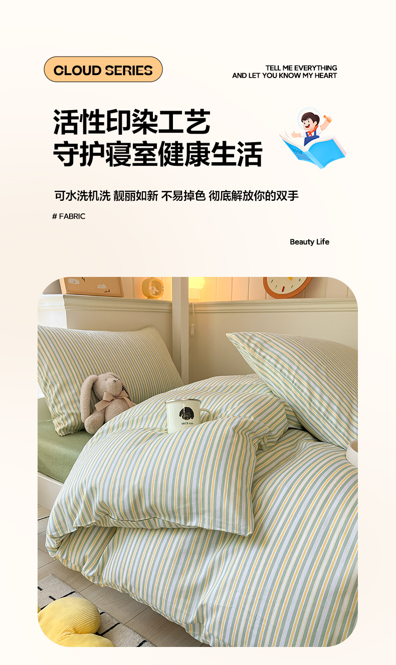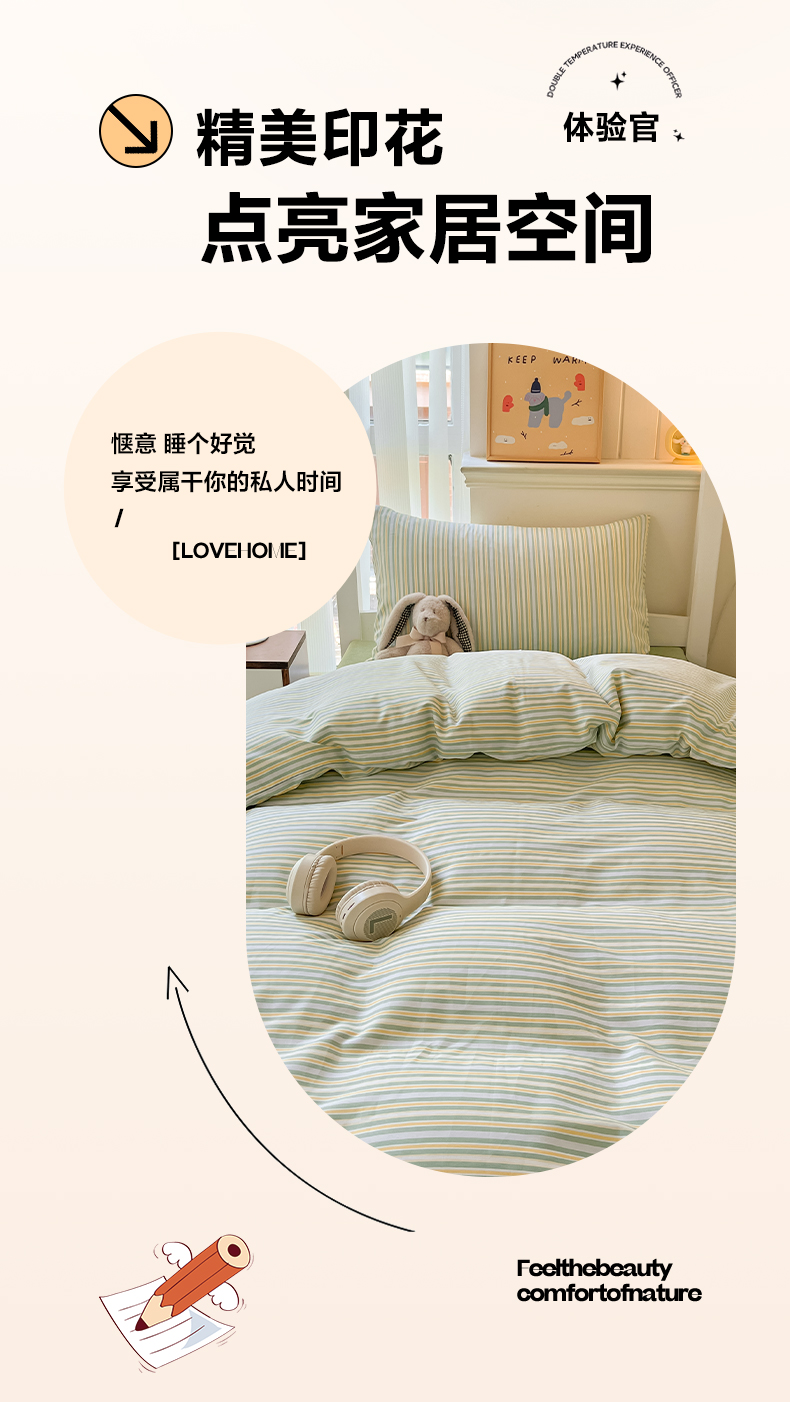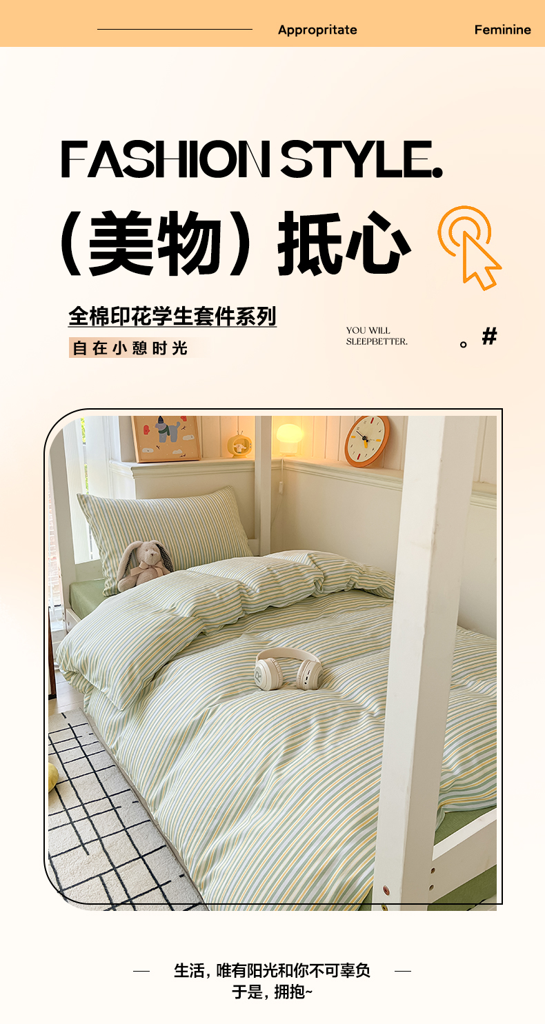 当前位置: 91家纺网 > 商品网购 > 床品套件 > 四件套 > 全棉普通四件套 > 雅居纺 2024新款全棉印花学生季套件 北欧细条