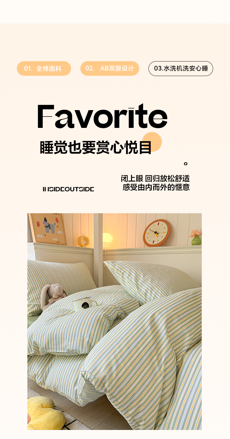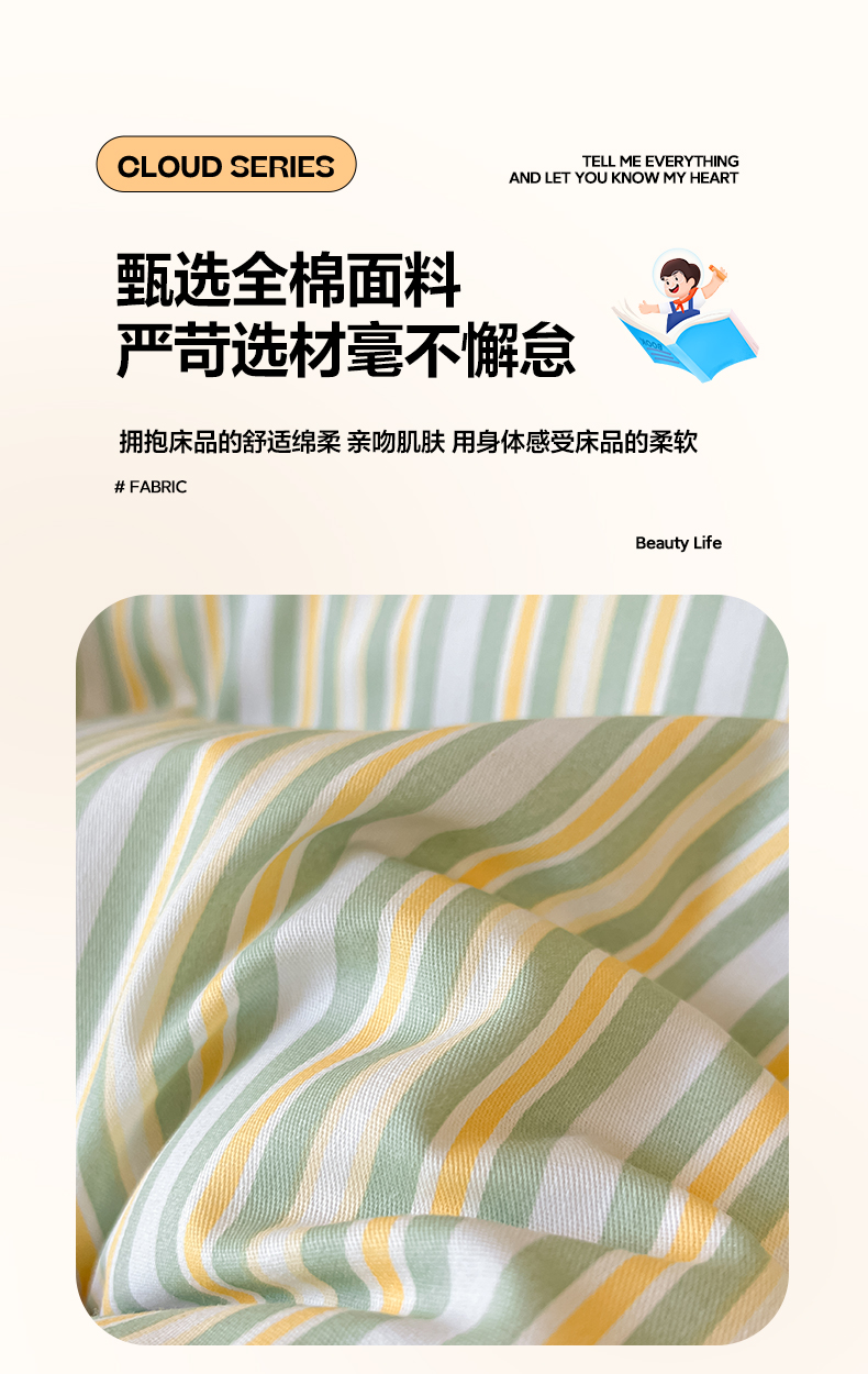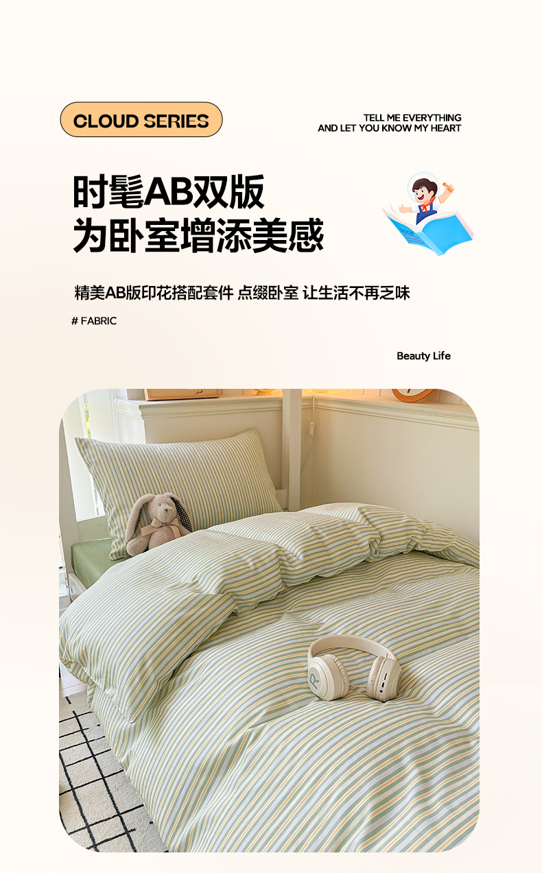 当前位置: 91家纺网 > 商品网购 > 床品套件 > 四件套 > 全棉普通四件套 > 雅居纺 2024新款全棉印花学生季套件 北欧细条