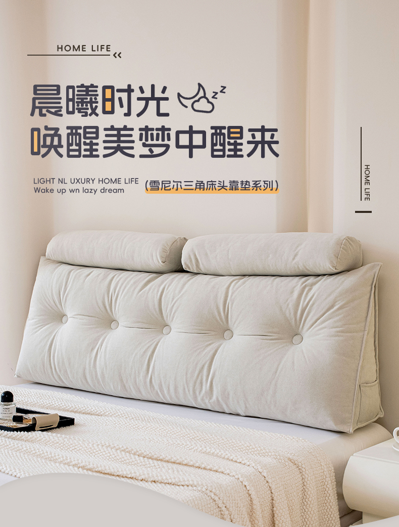 (总)碧尔家居 2025新款榻榻米床头靠枕大靠背卧室护腰靠垫可拆洗沙发双人软包三角玉米绒带头枕,米白,牛仔蓝,银灰