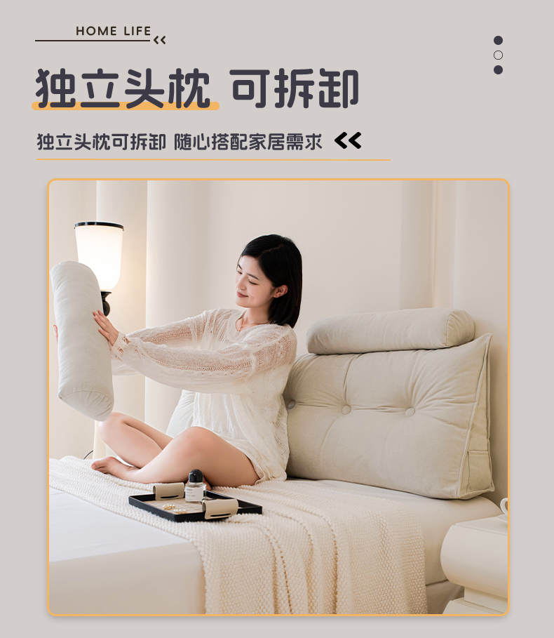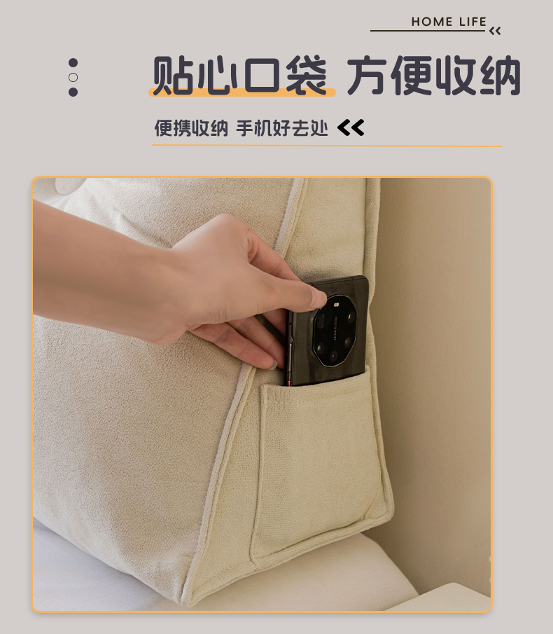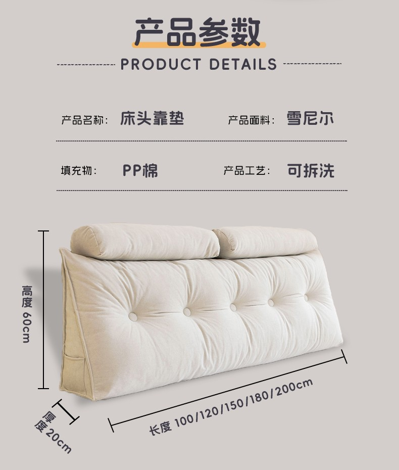 商品名称:碧尔家居 2025新款轻奢风床头靠枕榻榻米三角大靠垫软包加厚防撞护腰沙发靠背可拆洗 米白