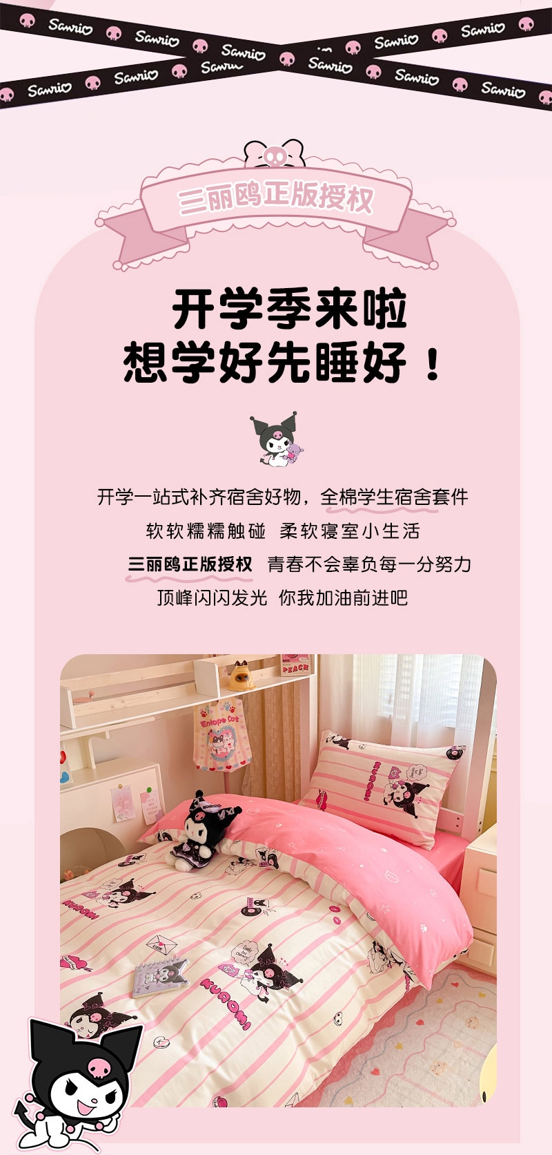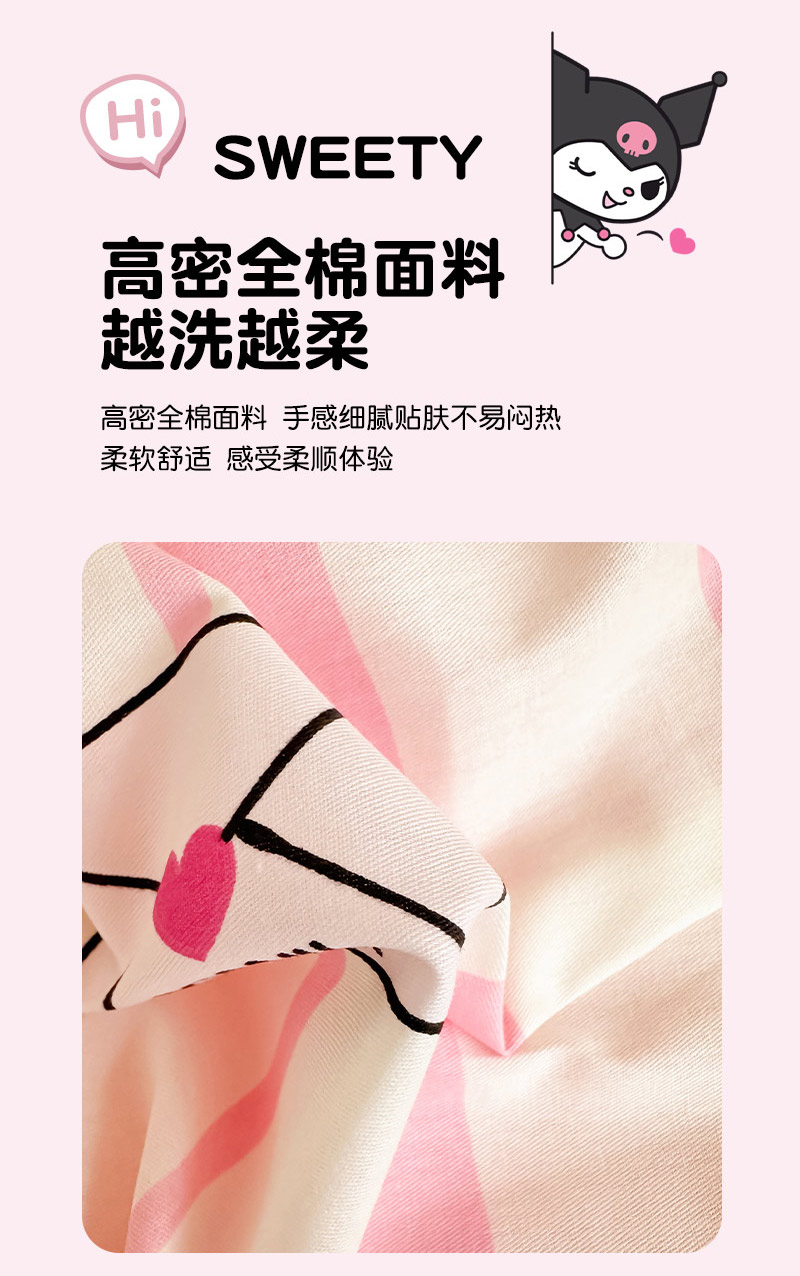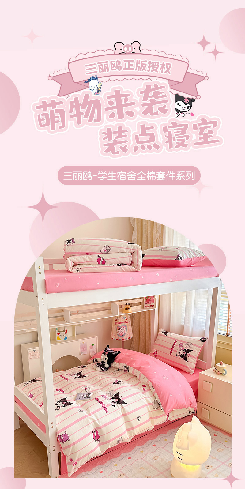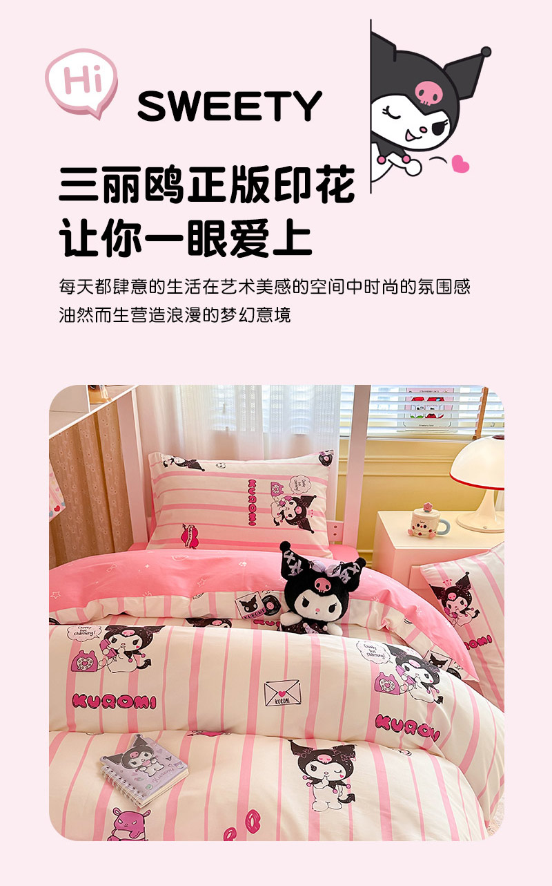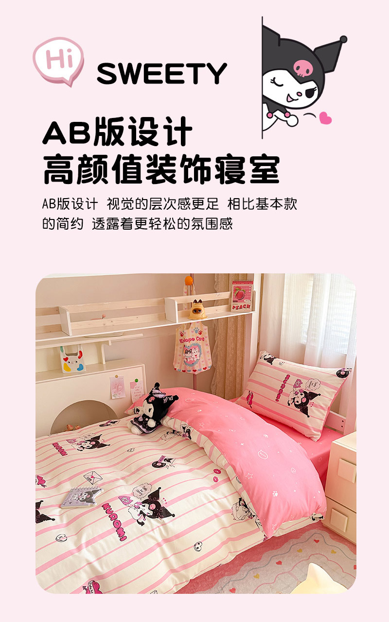 当前位置: 91家纺网 > 商品网购 > 床品套件 > 四件套 > 全棉普通四件套 > 蓝邻家纺 2024新款三丽鸥正版授权学生宿舍全棉印花四件套 米酷粉
