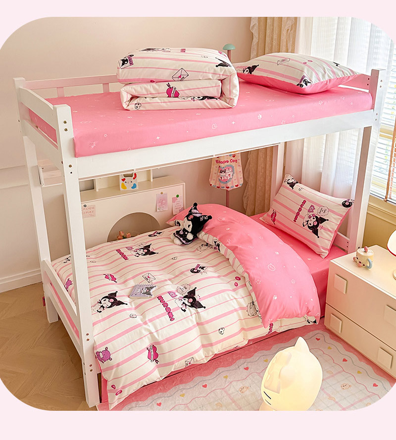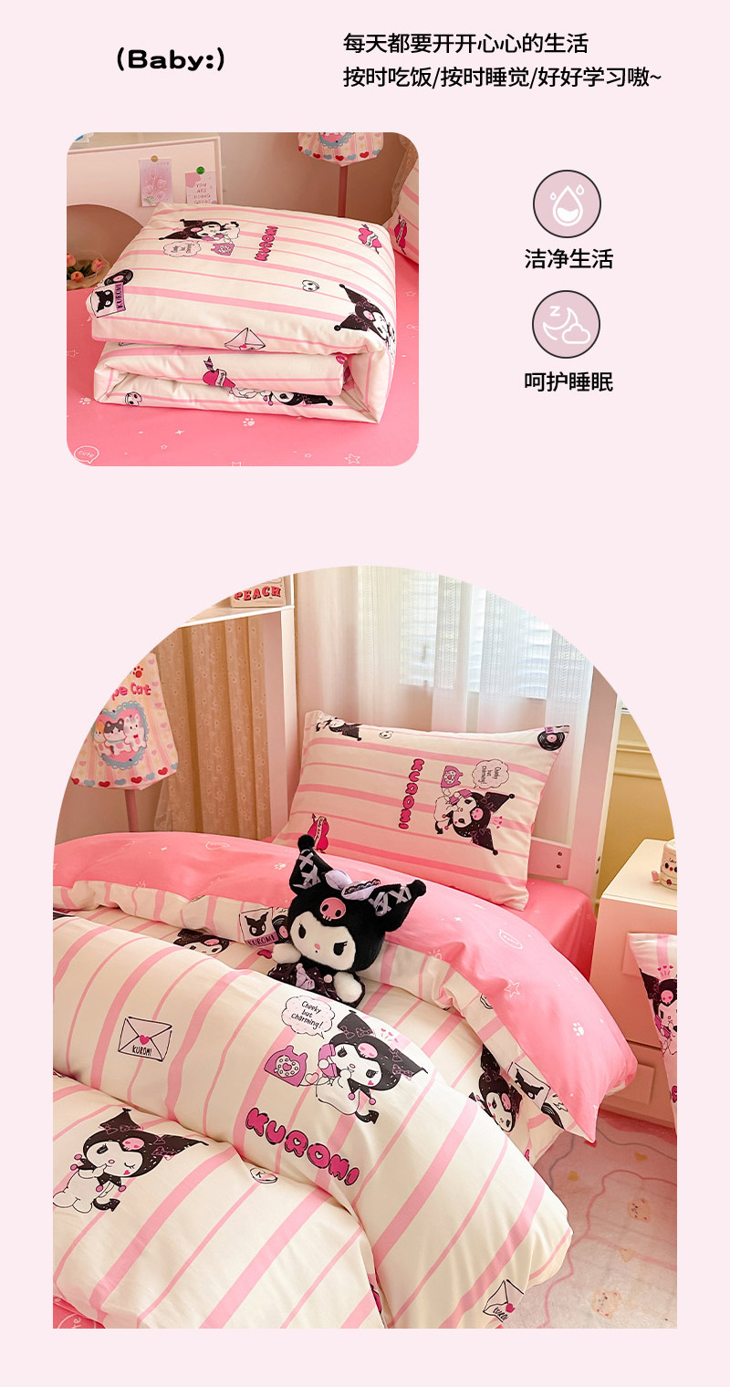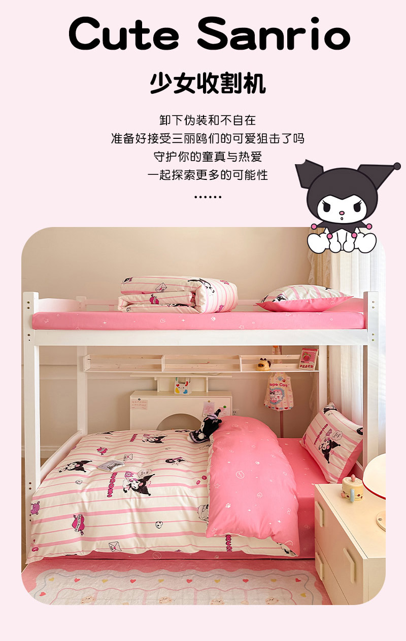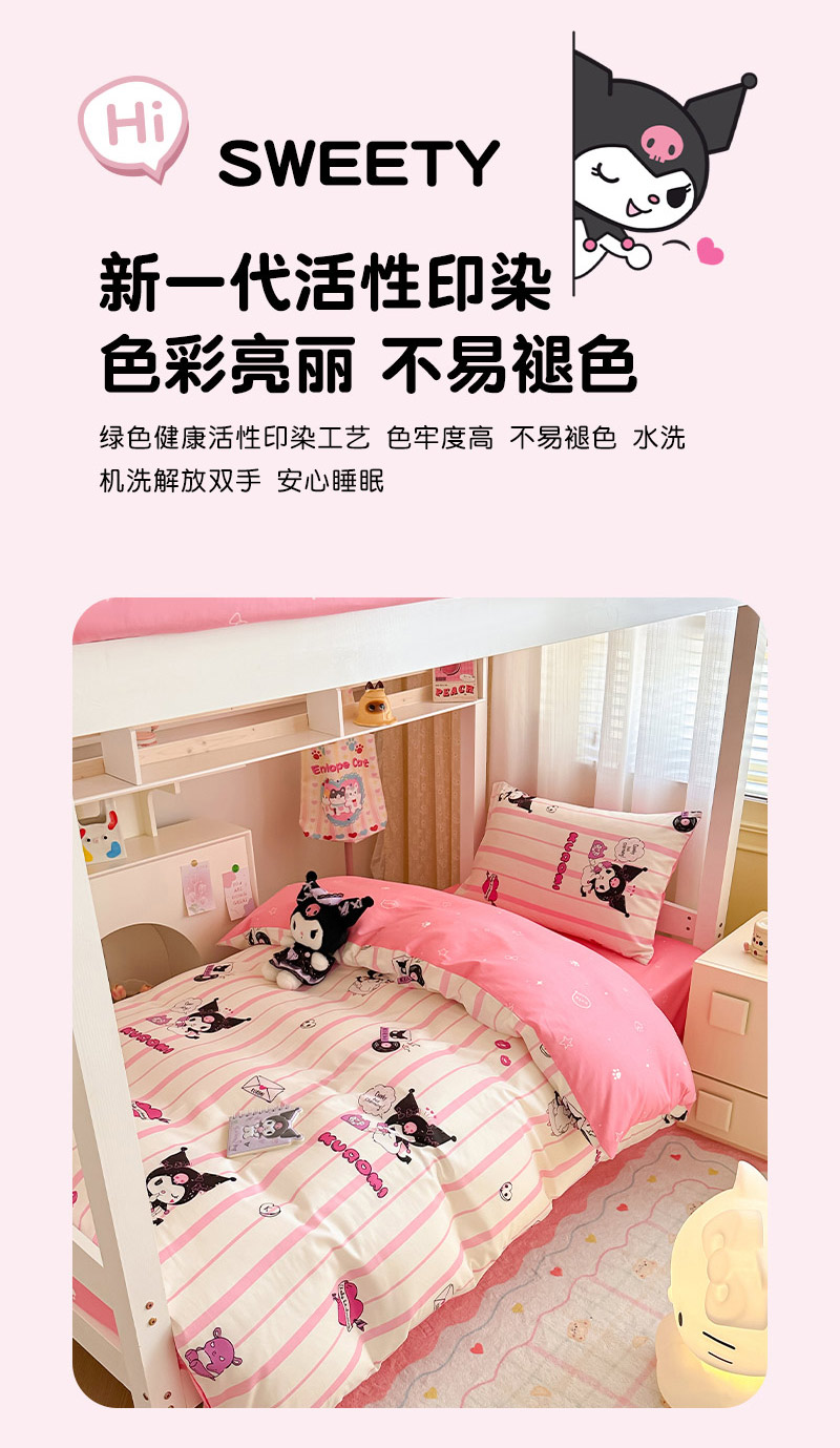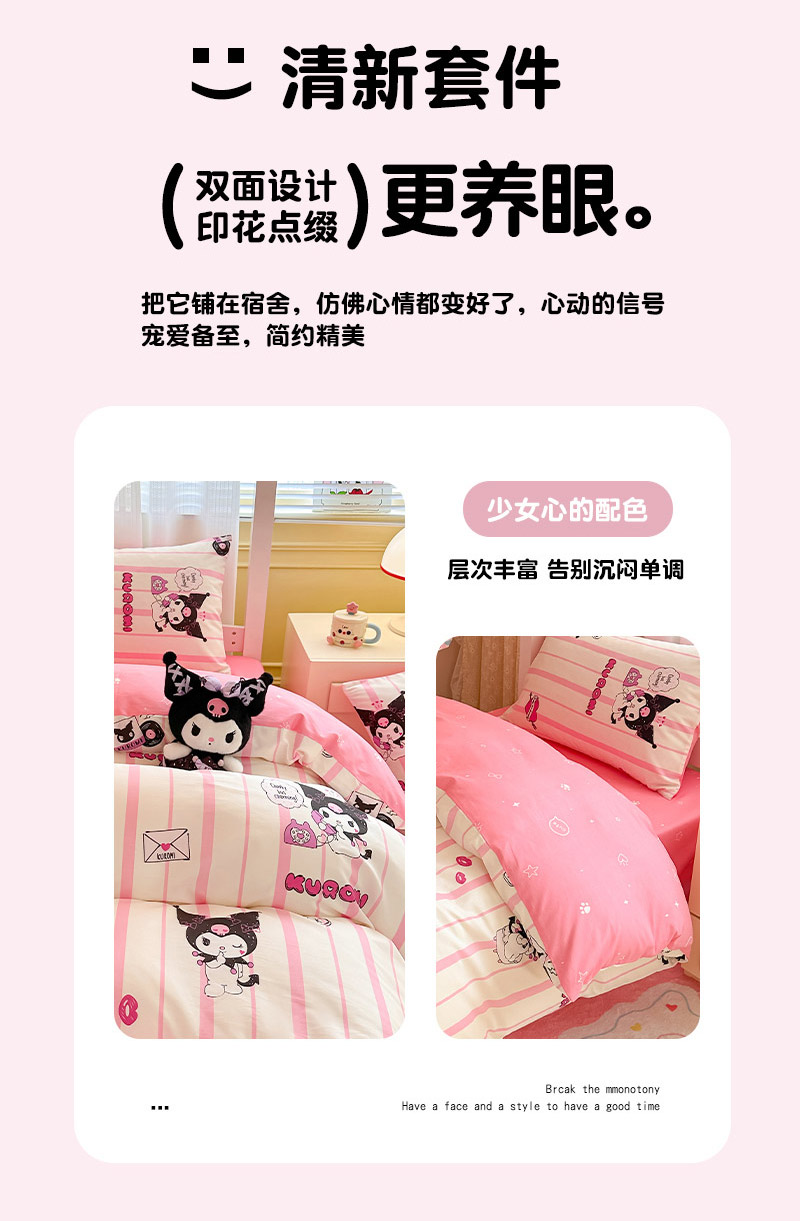 当前位置: 91家纺网 > 商品网购 > 床品套件 > 四件套 > 全棉普通四件套 > 蓝邻家纺 2024新款三丽鸥正版授权学生宿舍全棉印花四件套 米酷粉