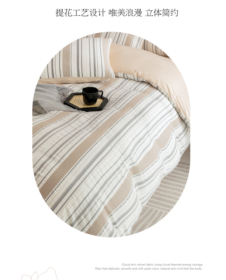 当前位置: 91家纺网 > 商品网购 > 床品套件 > 四件套 > 全棉普通四件套 > 倾慕家纺 2024新款A类提花全棉3D立体简约纯棉单枕套被套套件系列-四件套 华夫生活-香槟