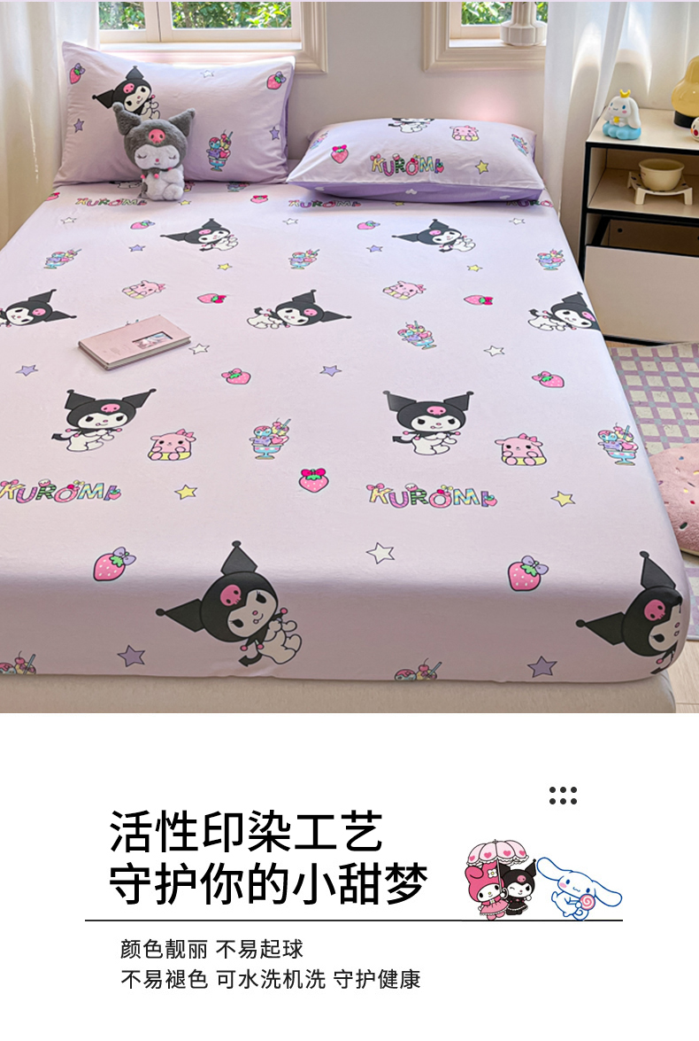 • 91家纺网 家纺一手货源 找家纺 博雅 2024新款三丽鸥卡通系列全棉印花床笠 草莓库洛米