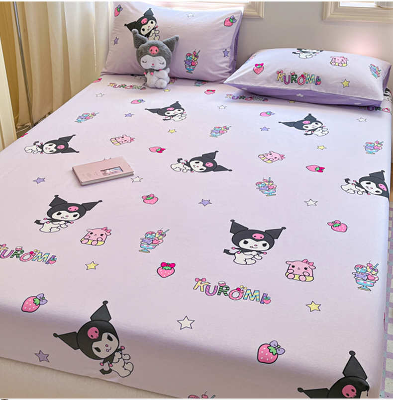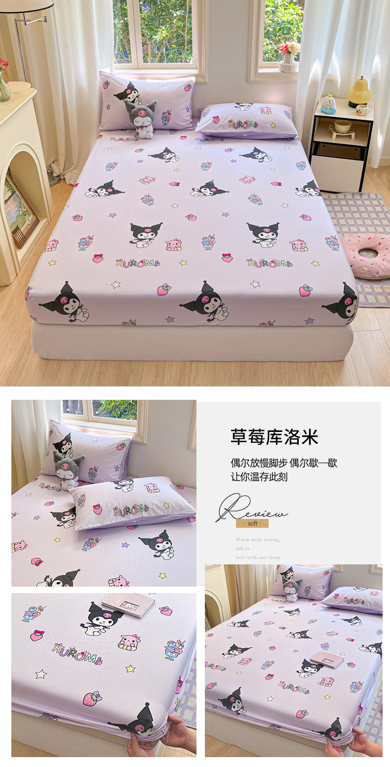博雅 2024新款三丽鸥卡通系列全棉印花床笠 草莓库洛米