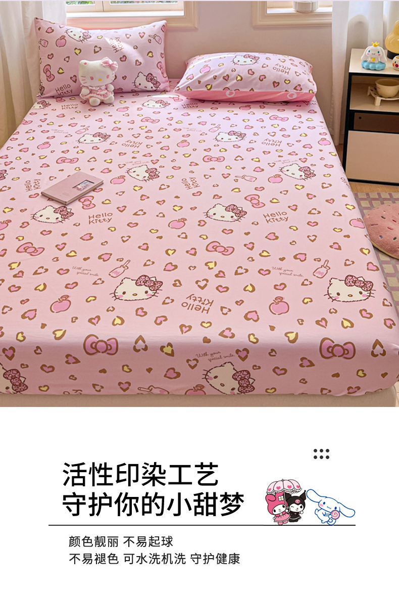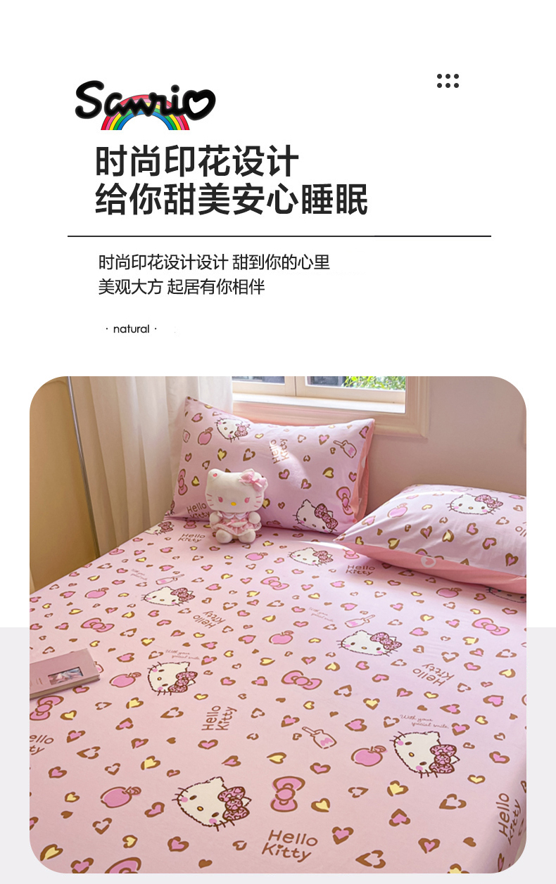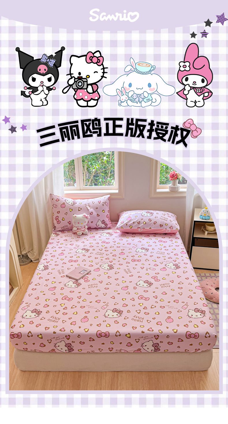 • 91家纺网 家纺一手货源 找家纺 博雅 2024新款三丽鸥卡通系列全棉印花床笠 心心KT