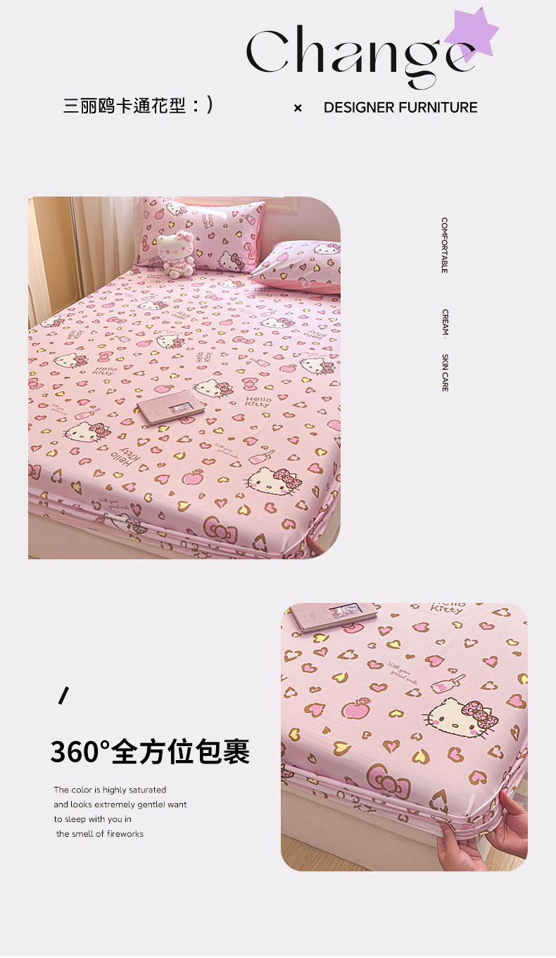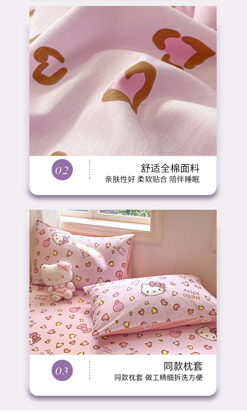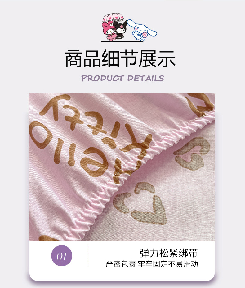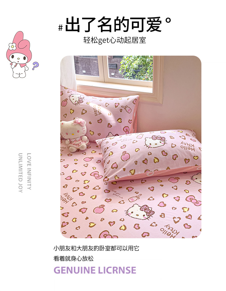 • 91家纺网 家纺一手货源 找家纺 博雅 2024新款三丽鸥卡通系列全棉印花床笠 心心KT