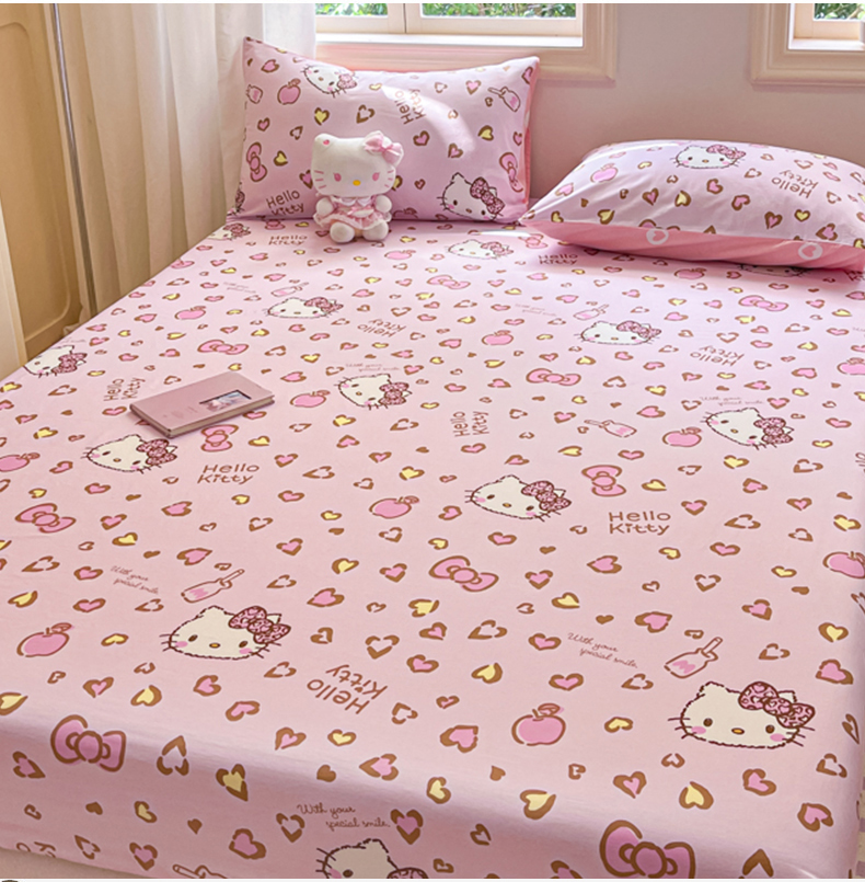 博雅 2024新款三丽鸥卡通系列全棉印花床笠 心心KT