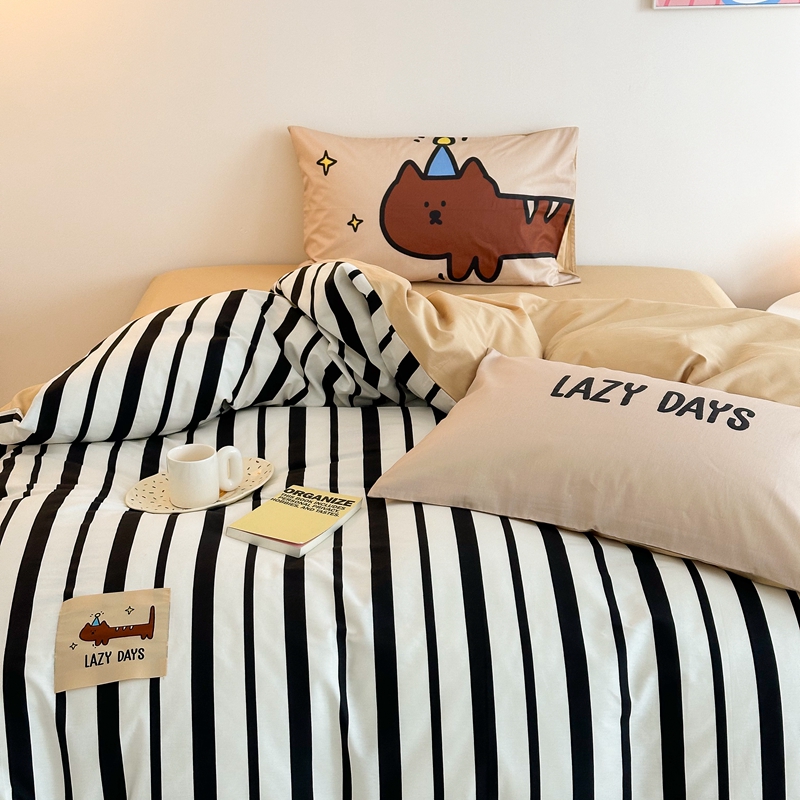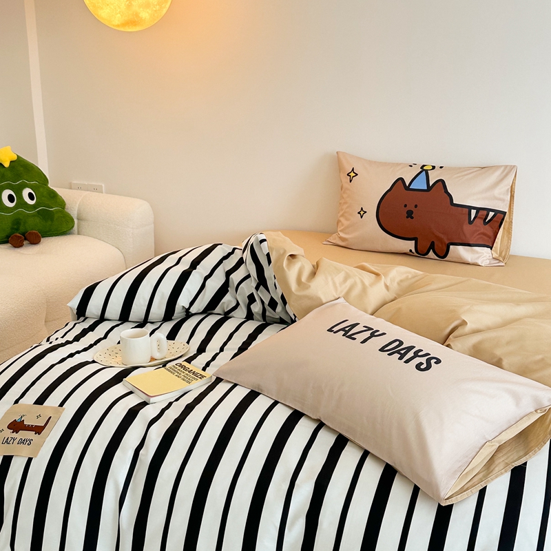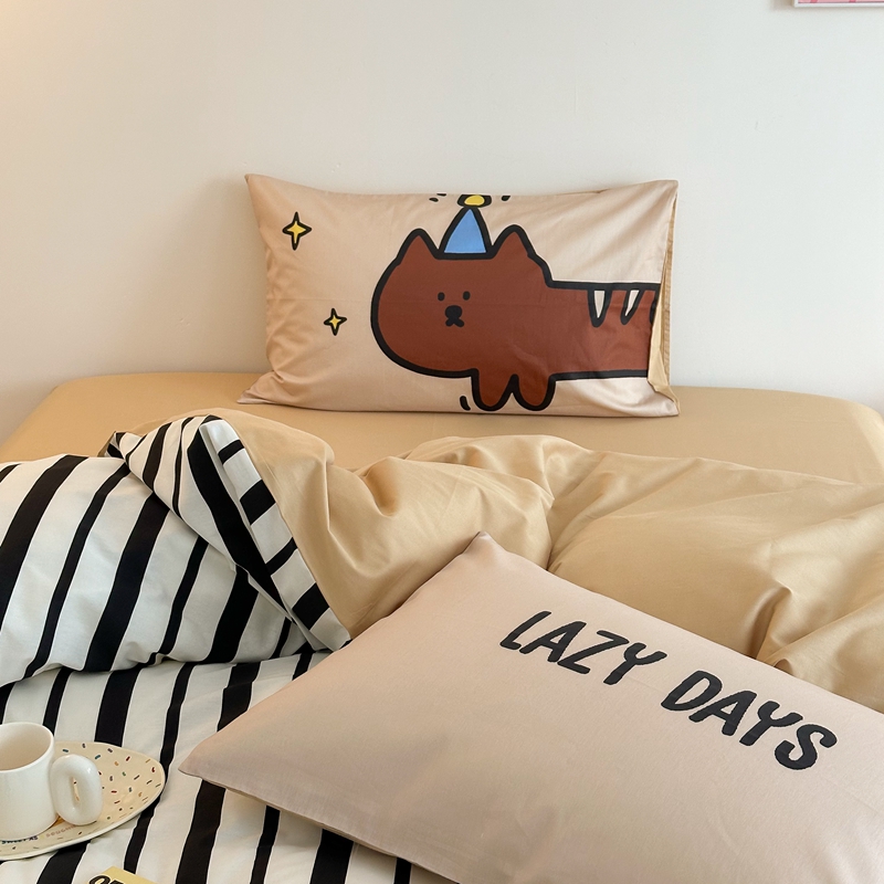 珺柔家纺 2024新款全棉40支贴画数码印花枕套四件套 派对小猫