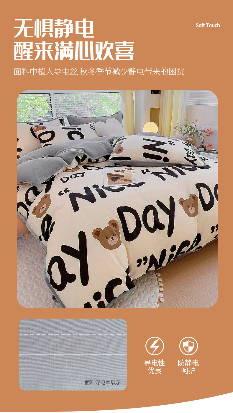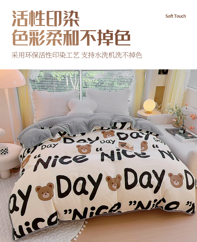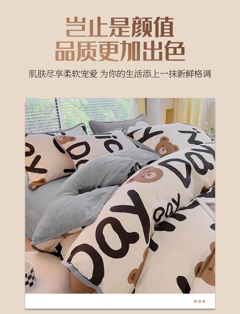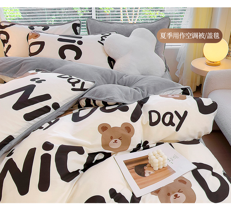 商品名称:2024新款全棉加牛奶绒四件套单被套系列-单被套 字母熊