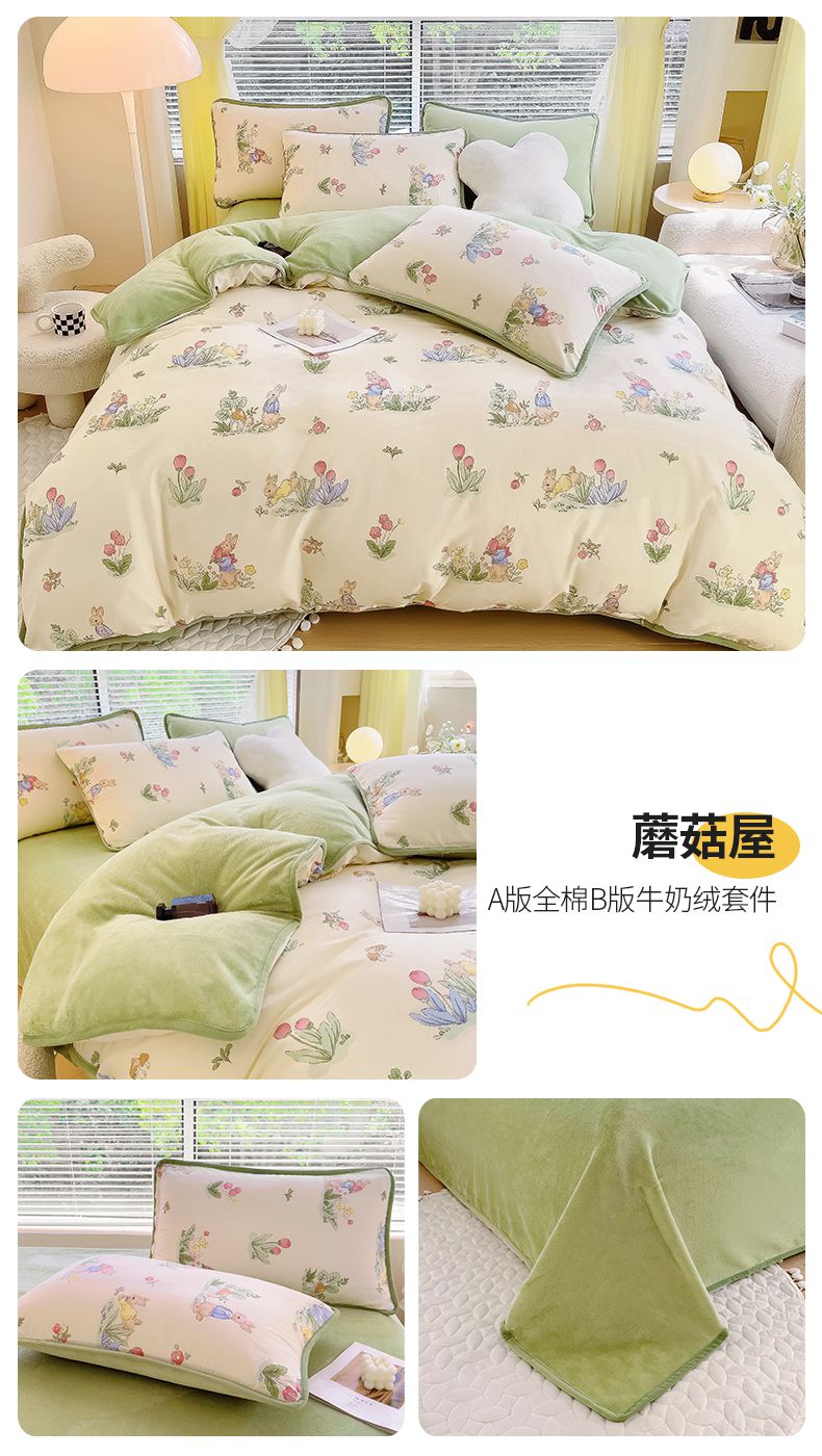 琪琪阁 2023新款A棉B绒棉加绒牛奶绒四件套单被套 蘑菇屋,蘑菇屋