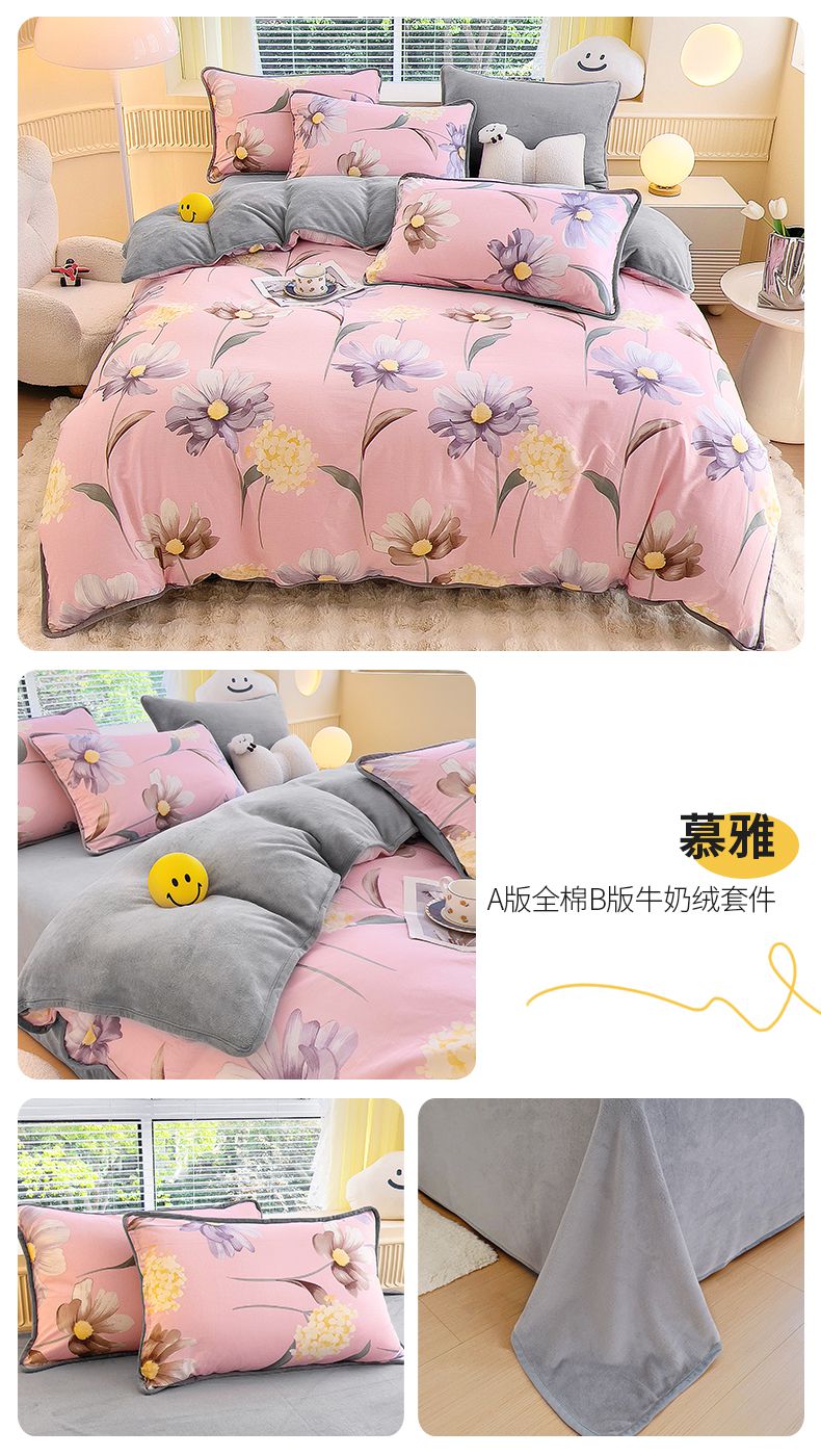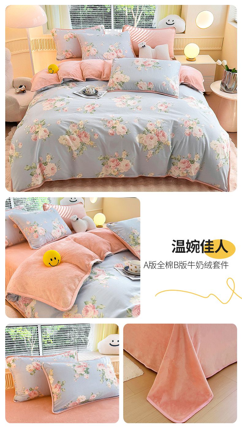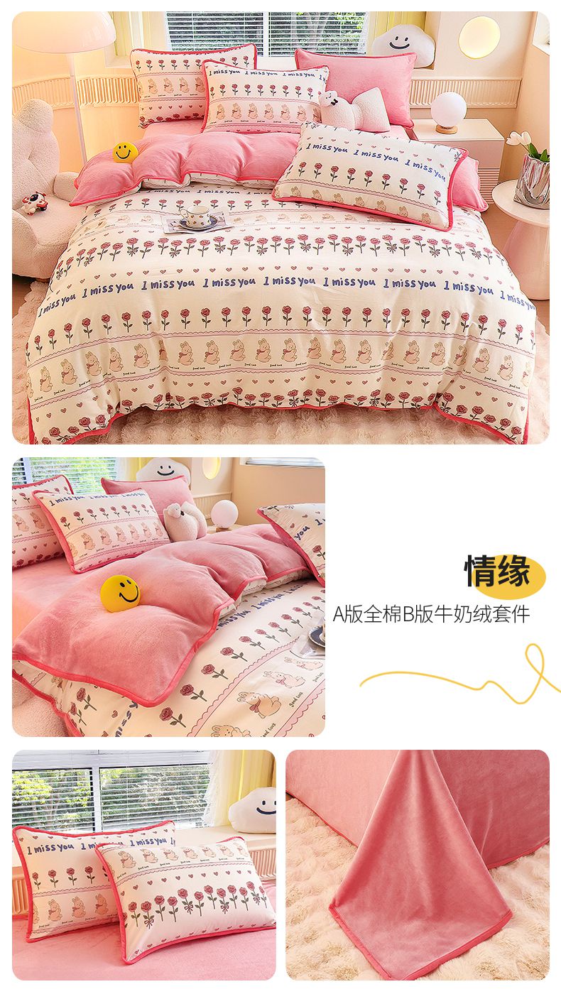 (总)2024新款全棉加牛奶绒四件套单被套系列-四件套