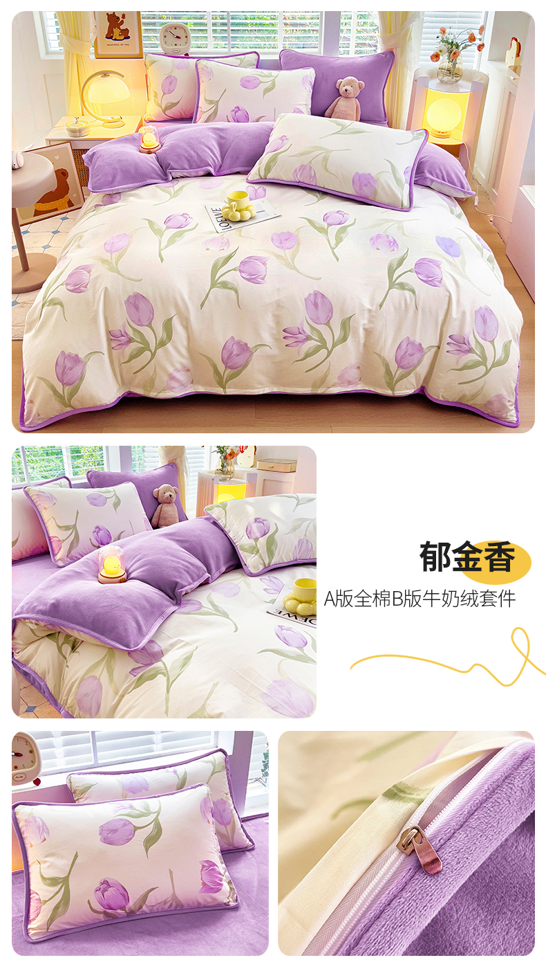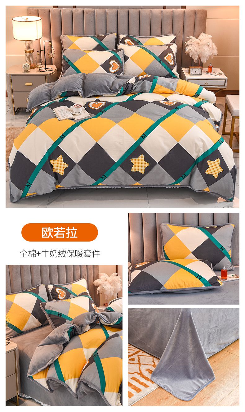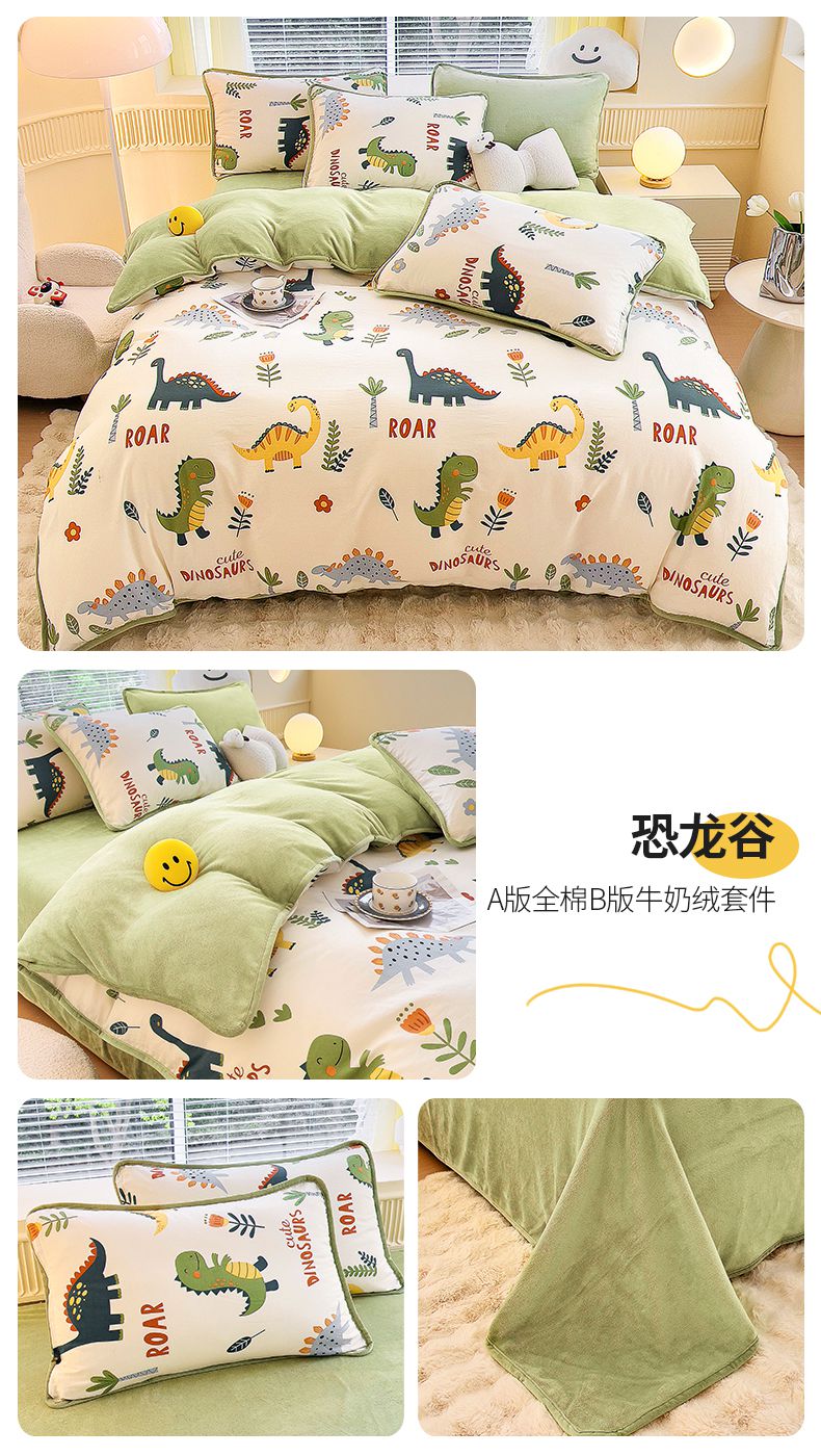 (总)2024新款全棉加牛奶绒四件套单被套系列-四件套