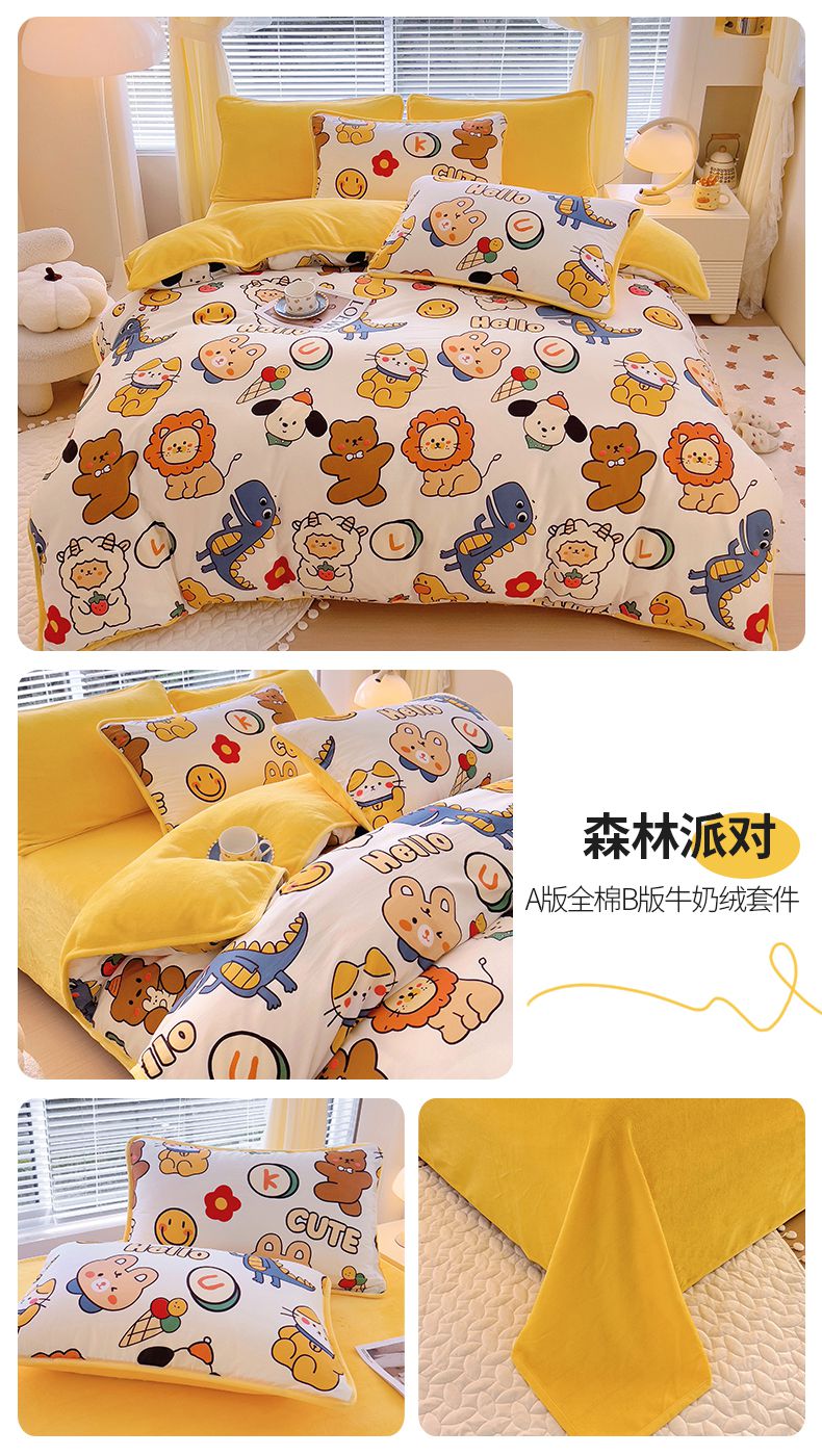 琪琪阁 2023新款A棉B绒棉加绒牛奶绒四件套单被套 快乐伙伴,快乐伙伴
