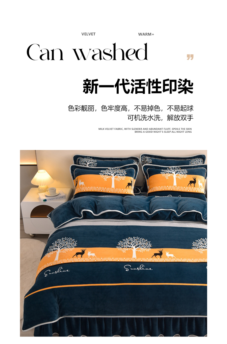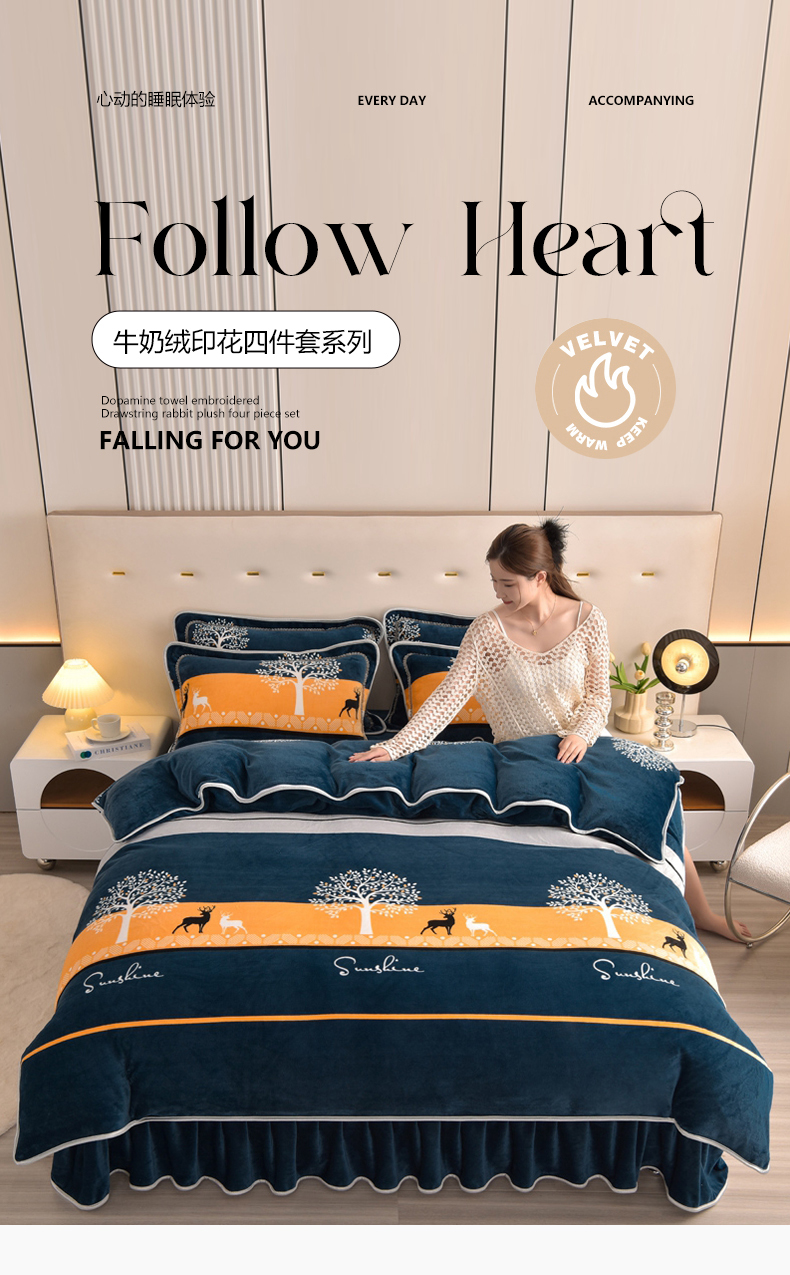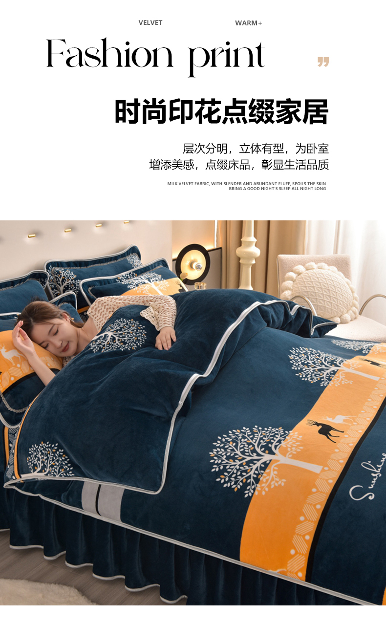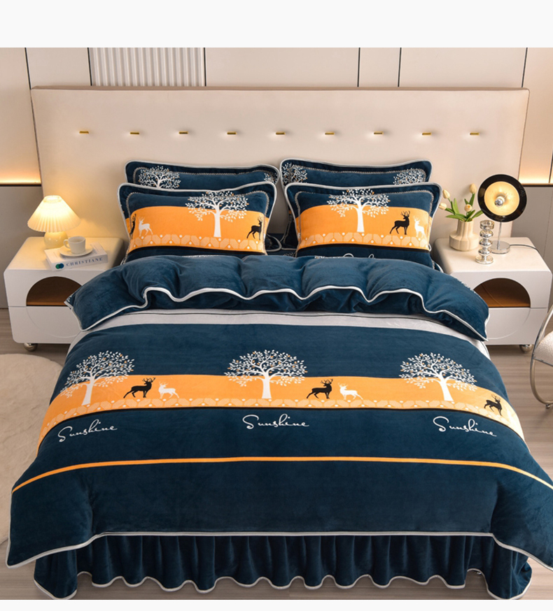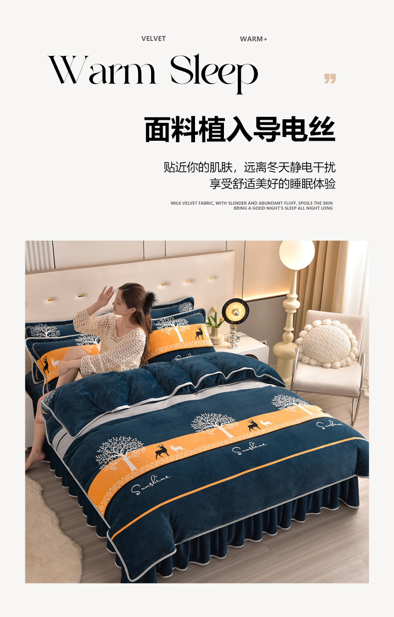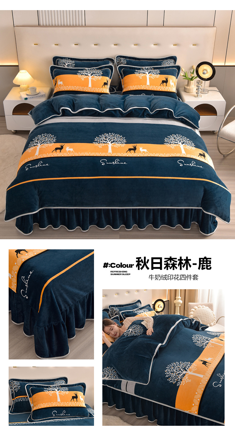 当前位置: 91家纺网 > 商品网购 > 床品套件 > 四件套 > 牛奶绒四件套 > 绒宴 2025新款8.5斤牛奶绒金貂法莱绒床裙款保暖四件套 秋日森林-鹿