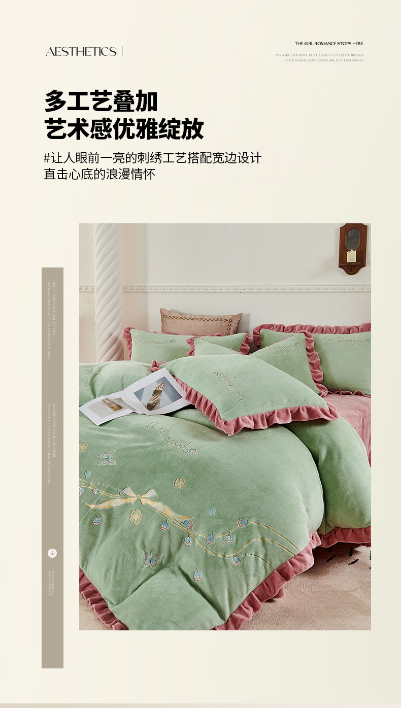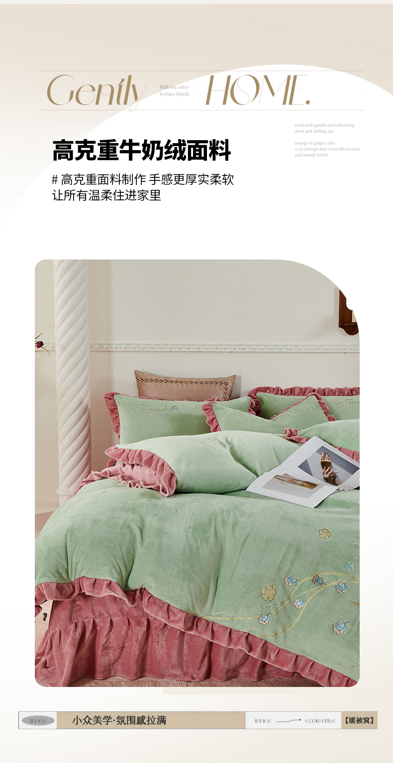 (总)慕克斯家纺 2025新款牛奶绒韩版贴布绣四件套 遇见系列,遇见-美人玉,遇见-浅紫,遇见-肉粉,遇见-水兰,遇见-驼,遇见-韵绿