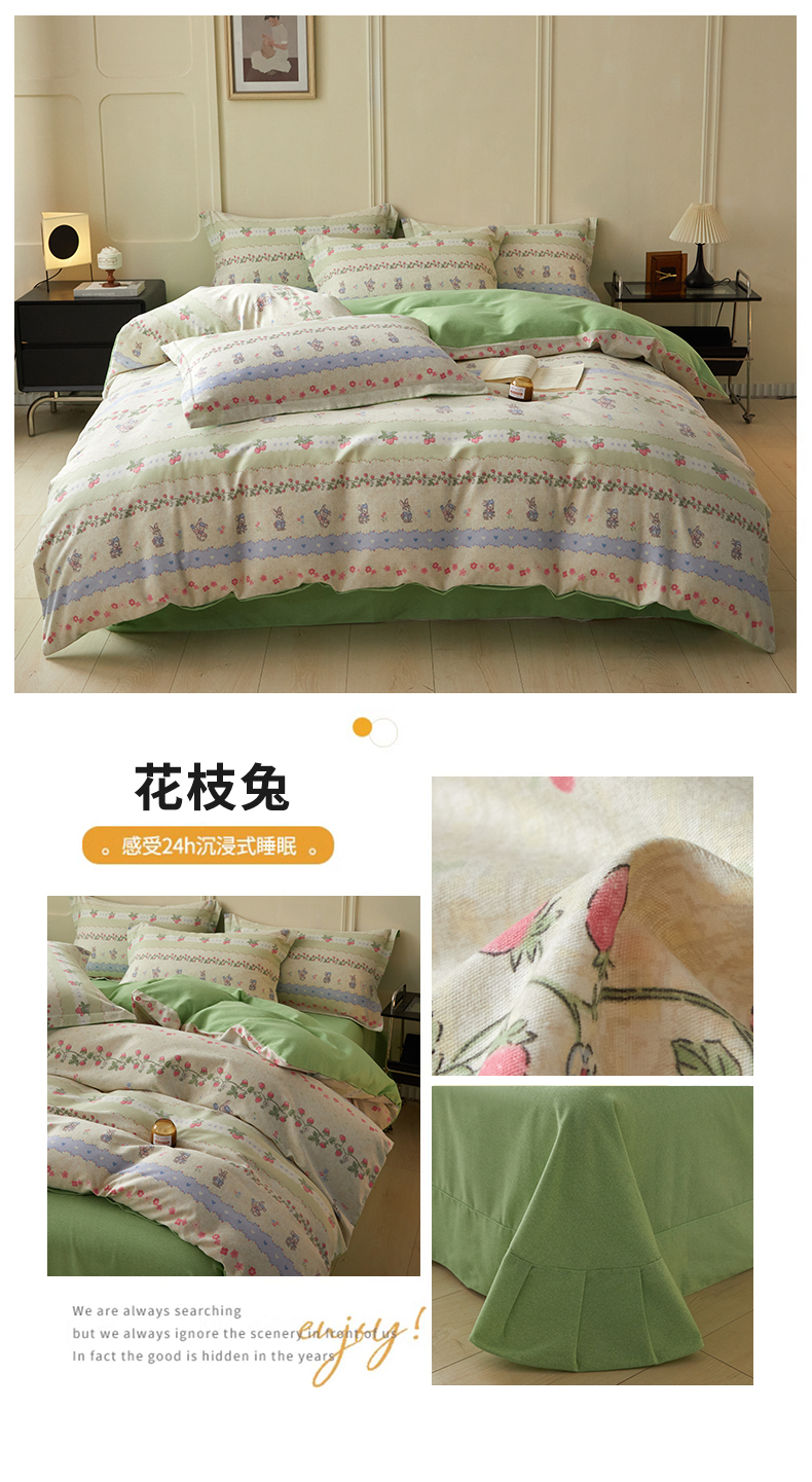 商品名称:启程家纺 2024全棉生态磨毛印花四件套 花枝兔