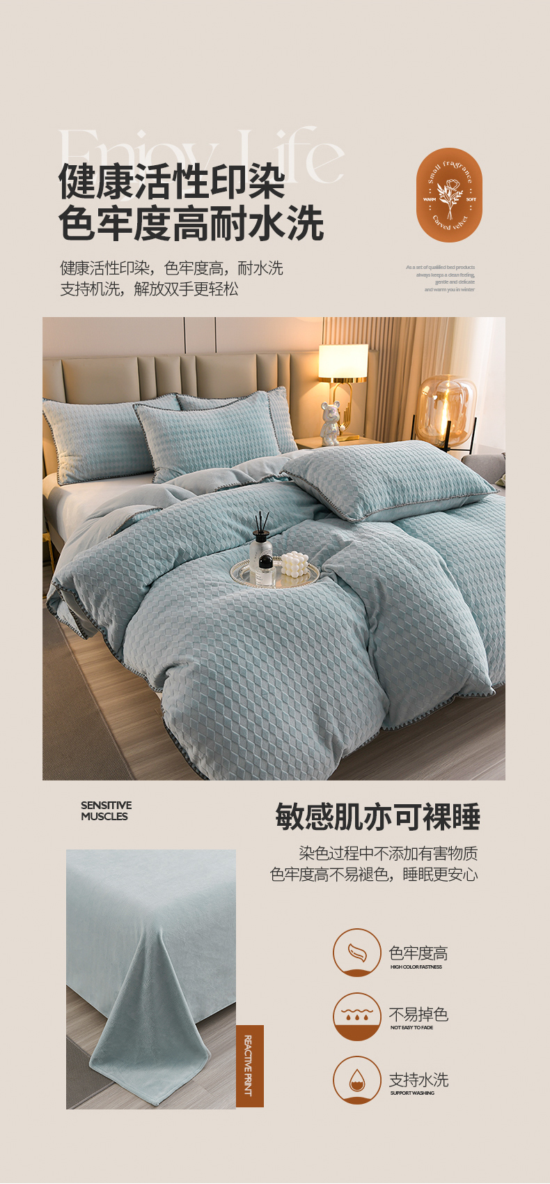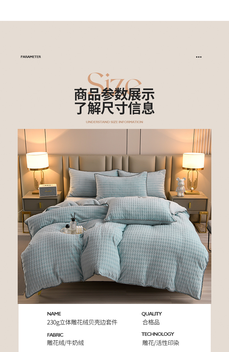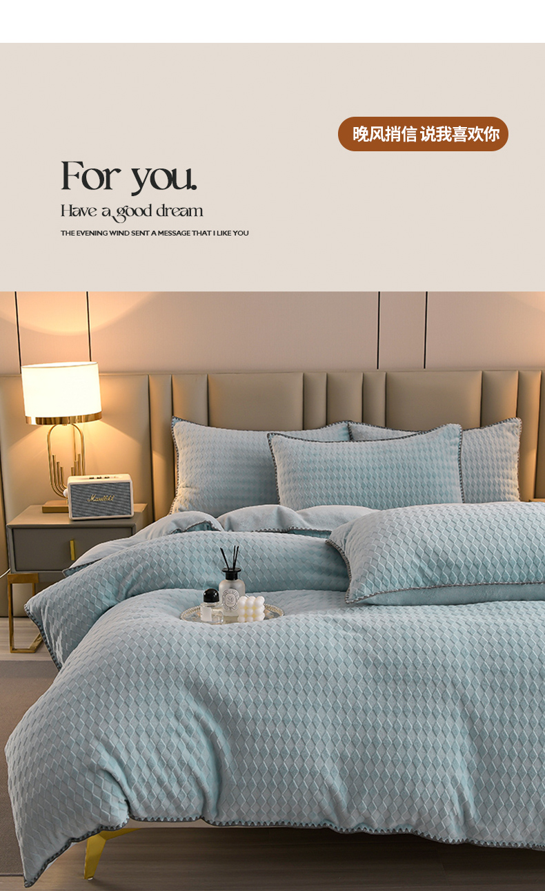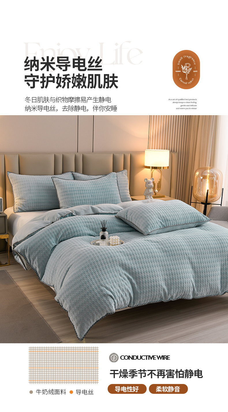 当前位置: 91家纺网 > 商品网购 > 床品套件 > 四件套 > 雕花绒四件套 > 菡宝 2024新款贝壳边雕花绒四件套 菱形格-雾蓝