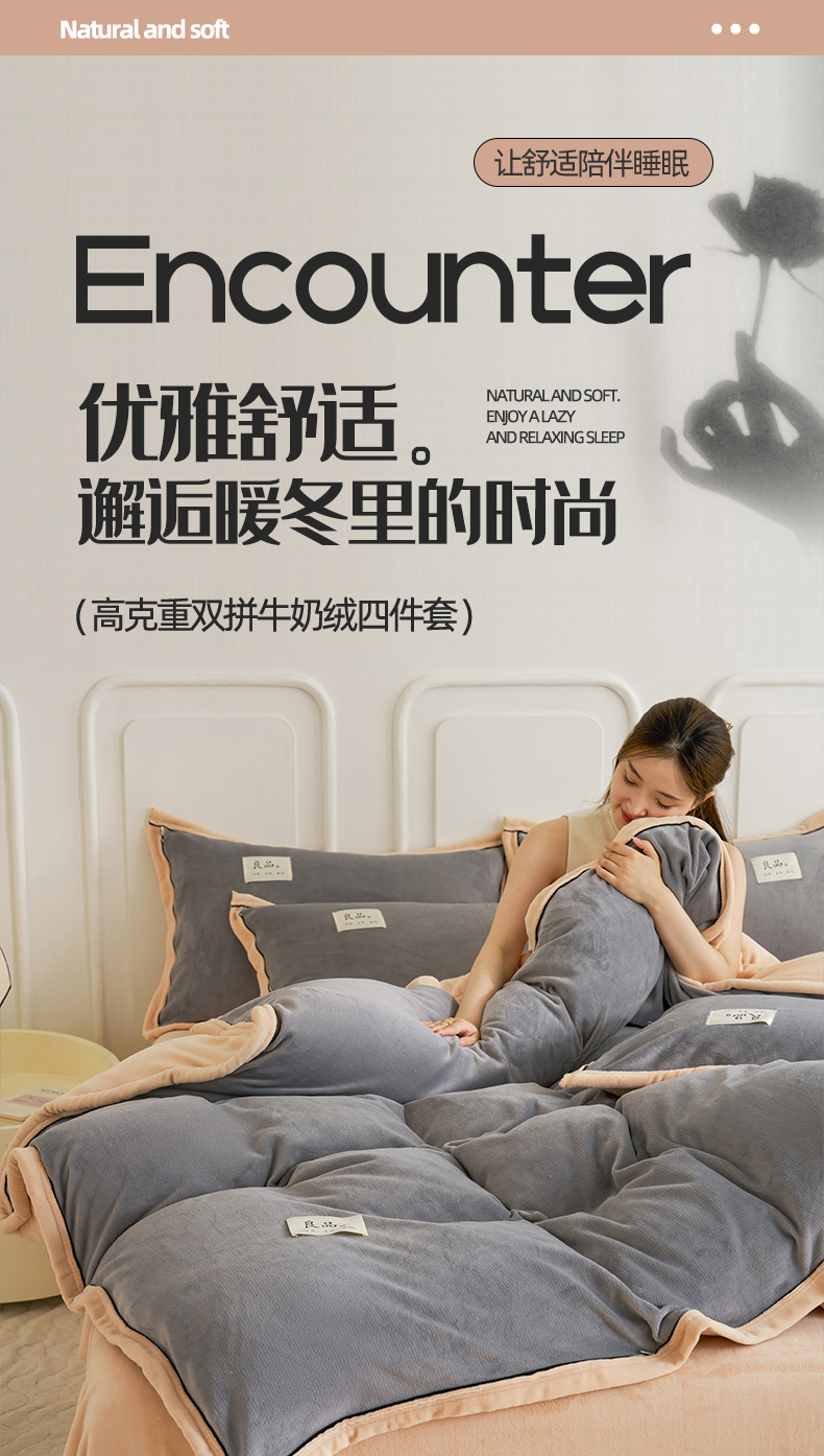 当前位置: 91家纺网 > 商品网购 > 床品套件 > 四件套 > 牛奶绒四件套 > 贝诗梦 2025新款高克重纯色牛奶绒宽边工艺款四件套 双拼牛奶绒-卡其灰+米金