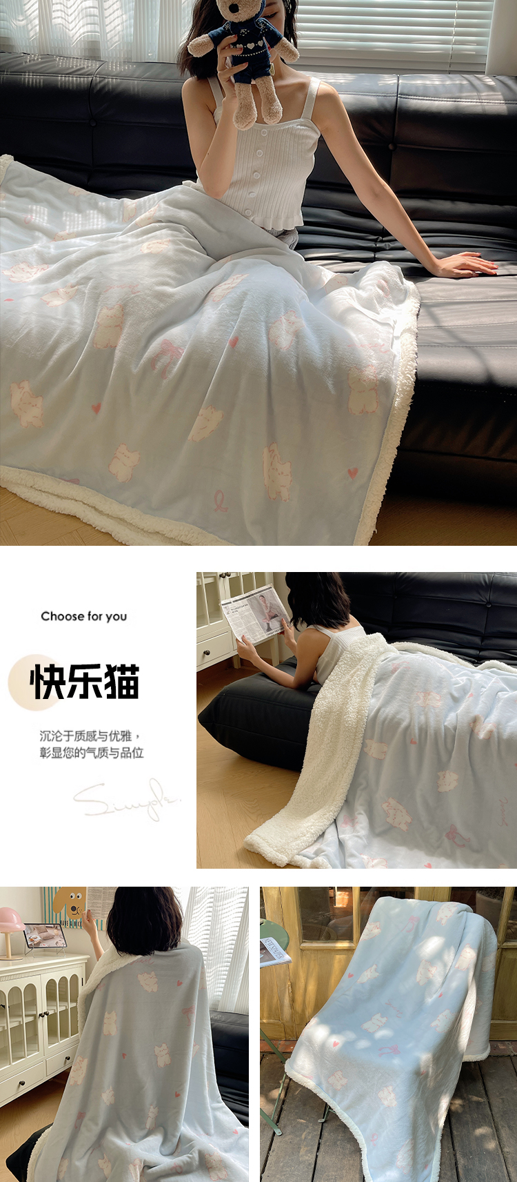 萝莉家纺 2024秋冬新款多功能加厚牛奶绒羊羔绒多功能毛毯 快乐猫
