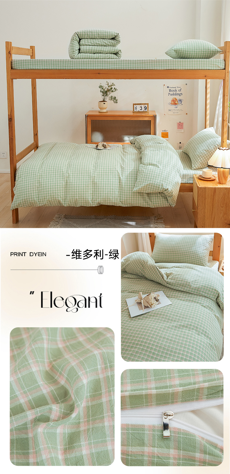 商品名称:棉小二 2024新款全棉水洗棉学生宿舍三四件套 维多利-绿