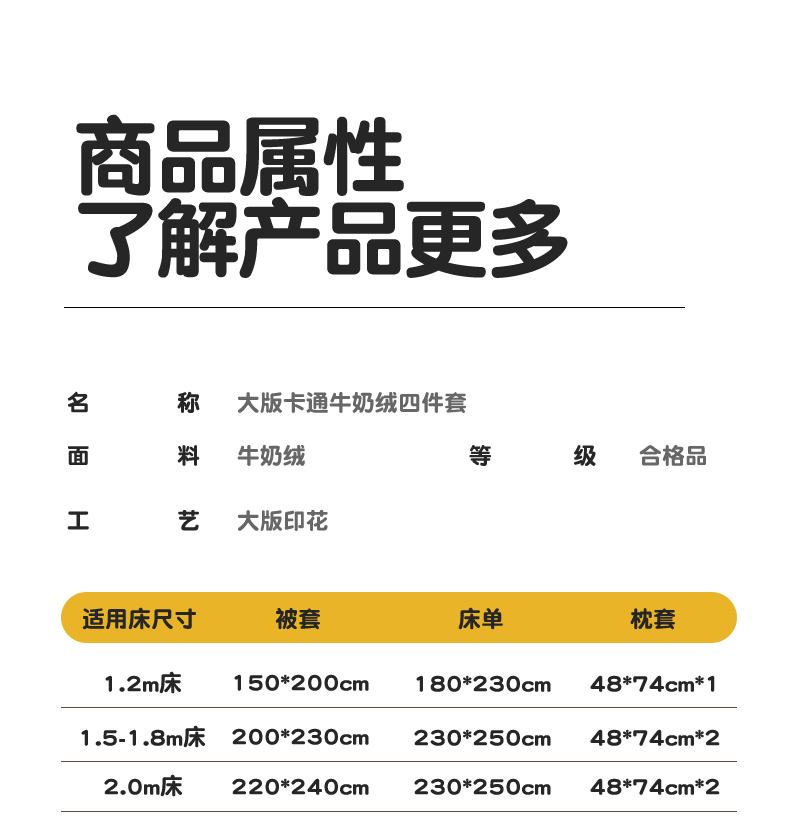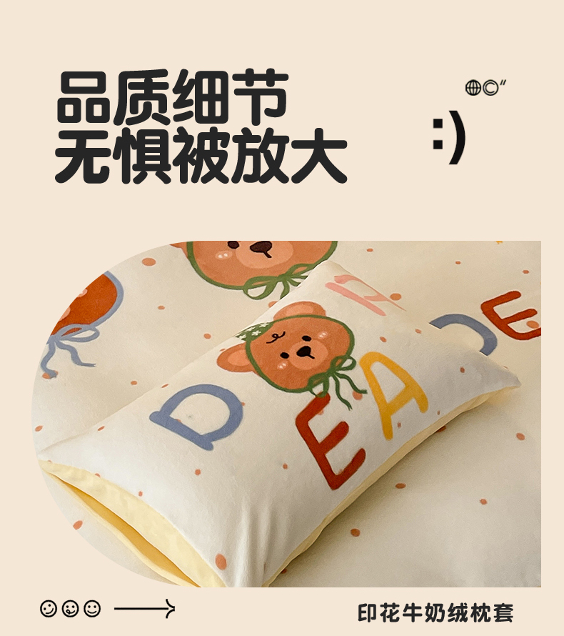 商品名称:星座家纺 2025新款大版卡通牛奶绒四件套 点点熊