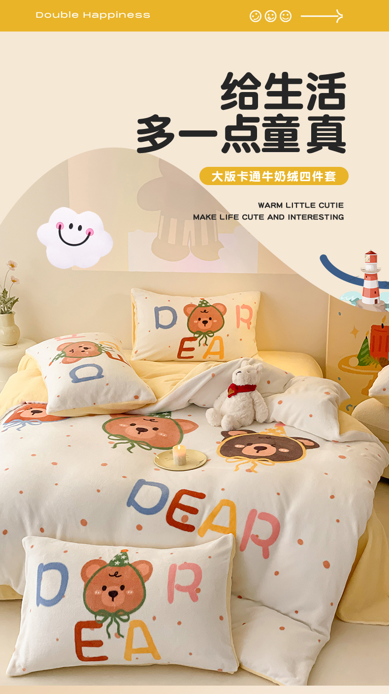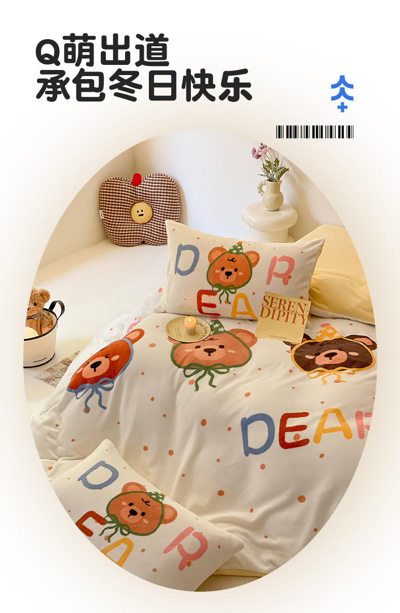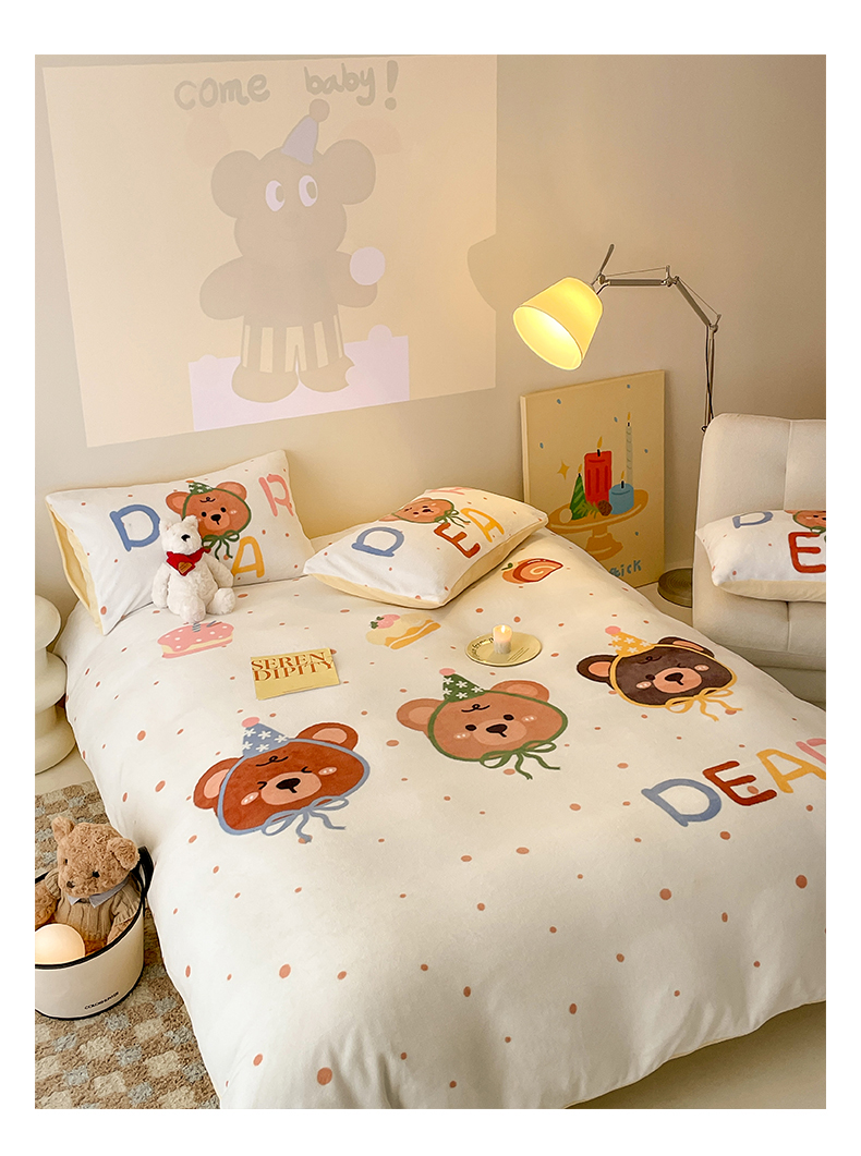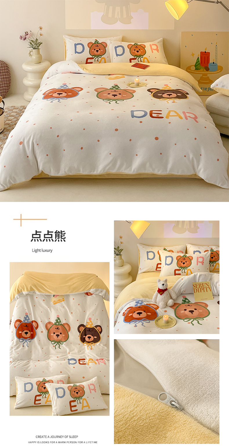 星座家纺 2025新款大版卡通牛奶绒四件套 点点熊