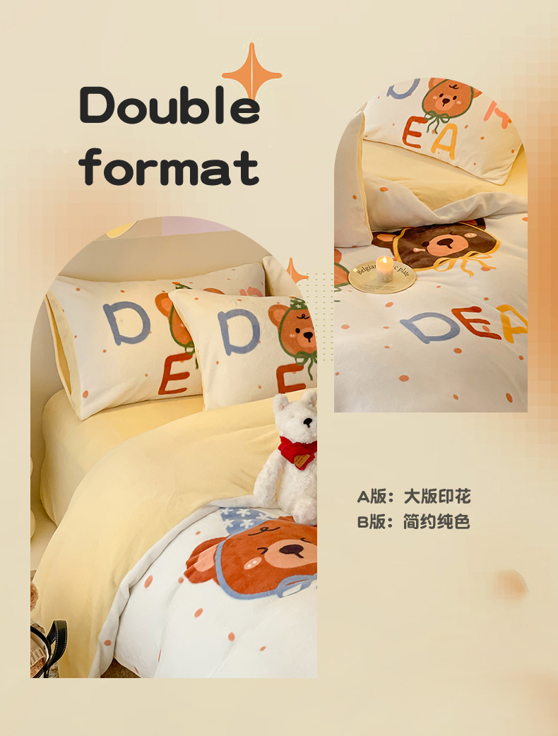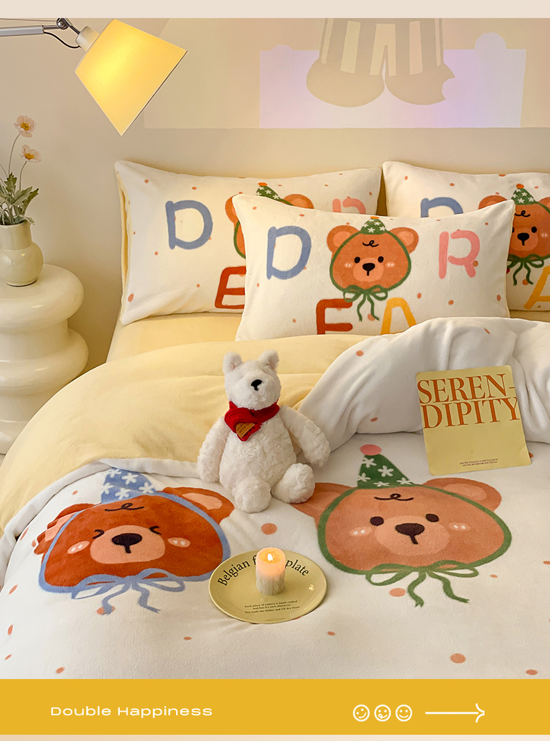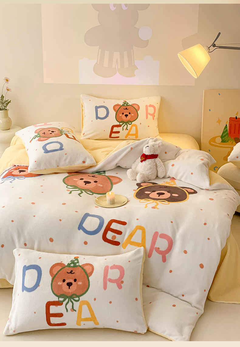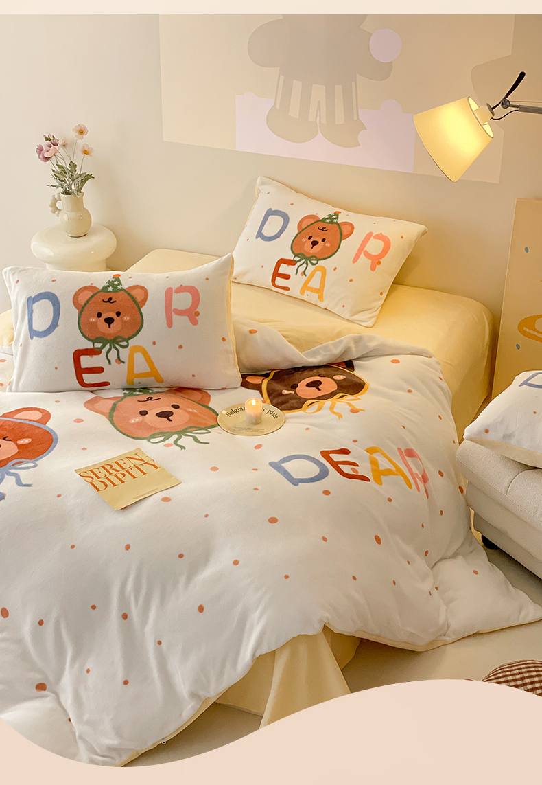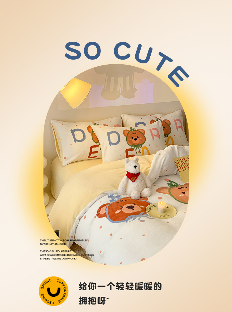 星座家纺 2025新款大版卡通牛奶绒四件套 点点熊