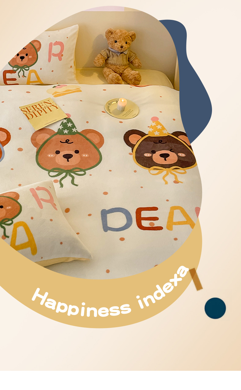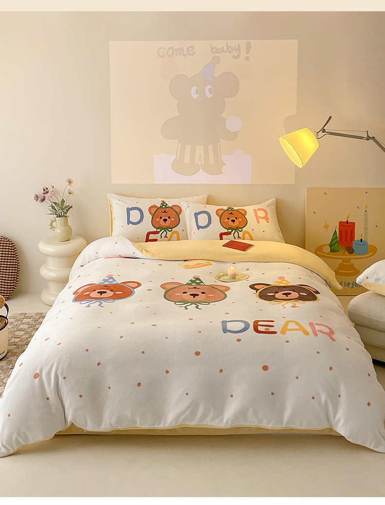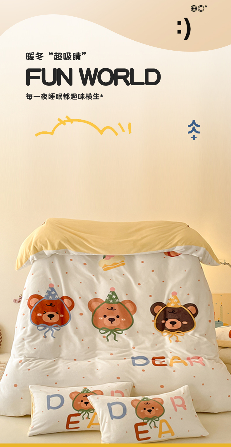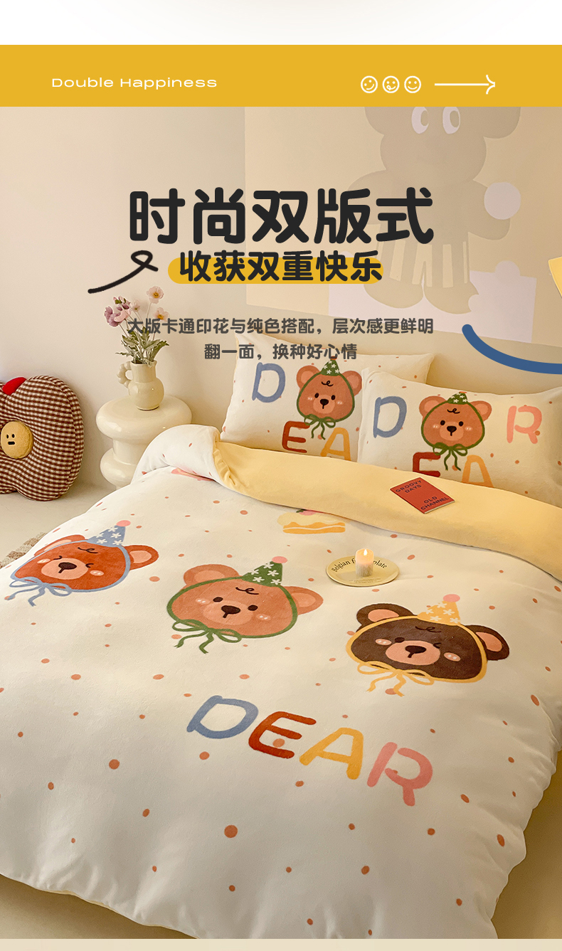 星座家纺 2025新款大版卡通牛奶绒四件套 点点熊